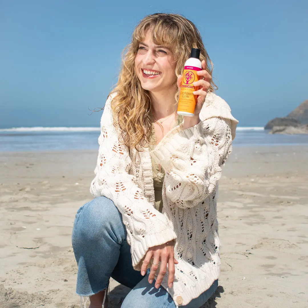 Confident Coils Styling Solution is our creamy, medium hold styler for fine and medium textured hair. It has some curl enhancement, but can be used with Jessicurl Gelebration Spray or Rockin’ Ringlets Styling Potion for extra curl enhancement or alone to give tighter curls definition and hold.