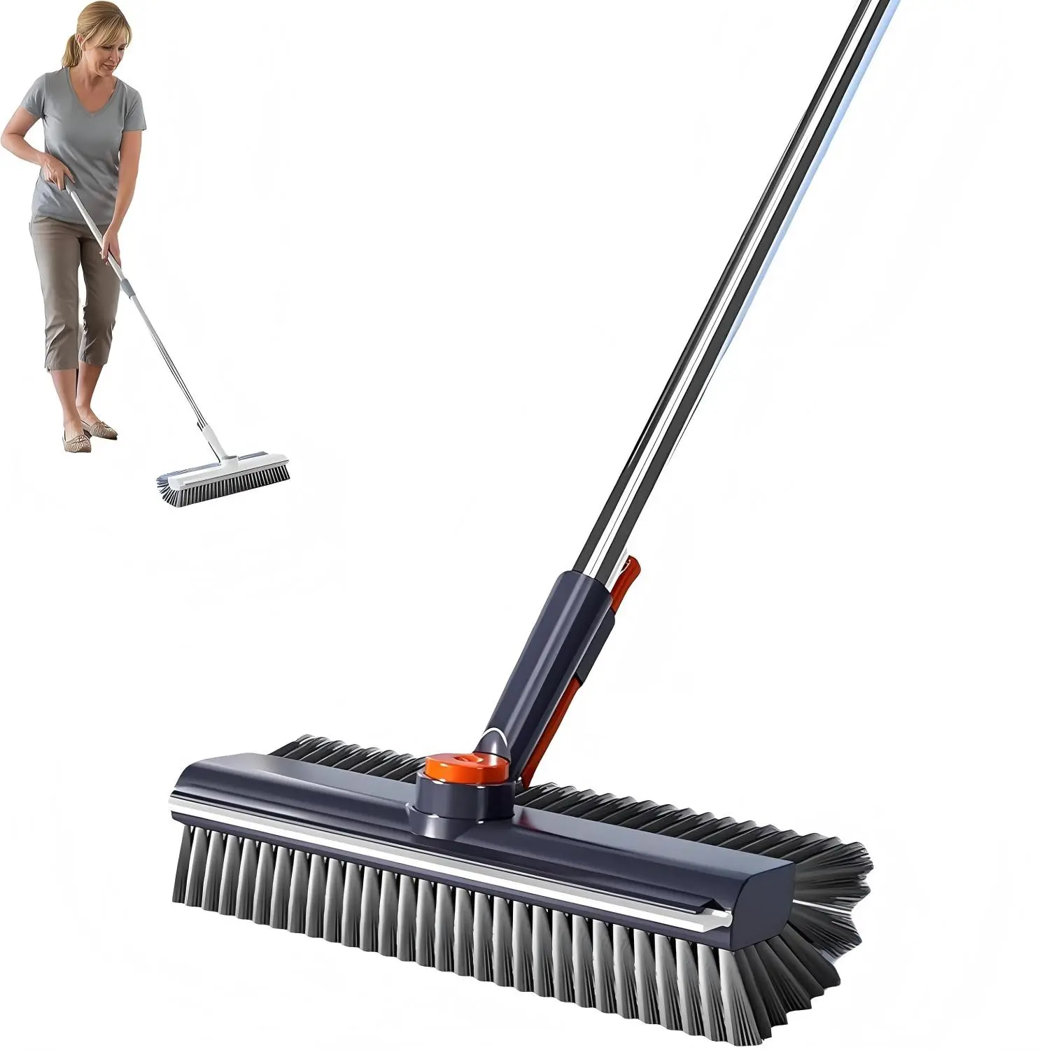 ·【Durable Hard Bristles & Strong Construction】Made with high-quality PVC stiff bristles, a sturdy stainless steel handle, and a durable rubber squeegee, this heavy-duty cleaning brush is built to handle frequent scrubbing while maintaining strong cleaning performance.
