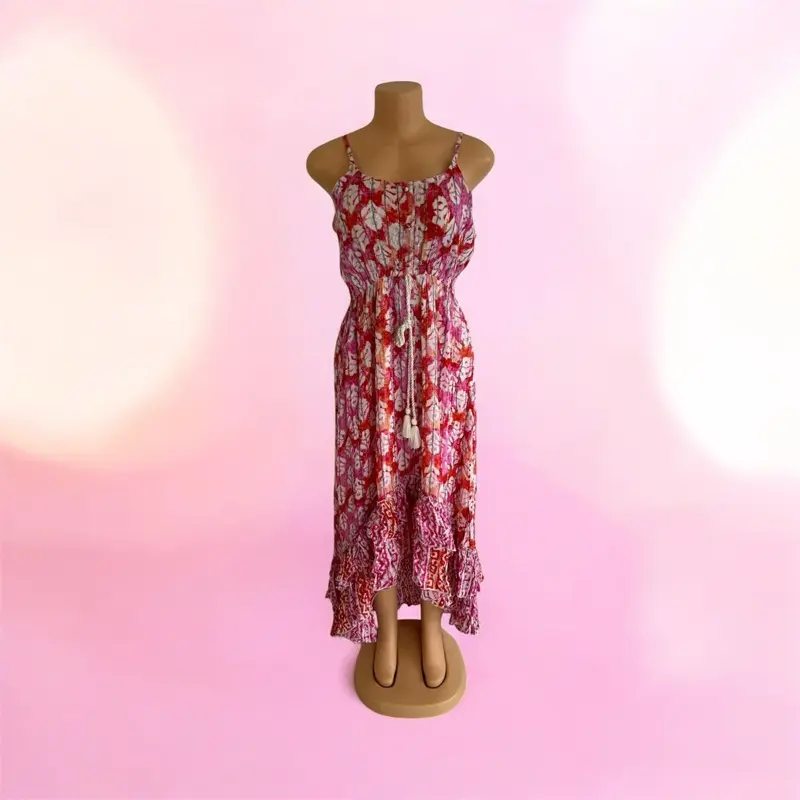 ·Lightweight Indian-inspired viscose dress designed in a comfortable one size fit. Made from soft, breathable fabric that feels fresh and smooth on the skin. Its flowy silhouette creates an effortless and elegant look, perfect for warm days, vacations, or casual chic outfits. A versatile and timeless piece with a touch of boho ethnic style.