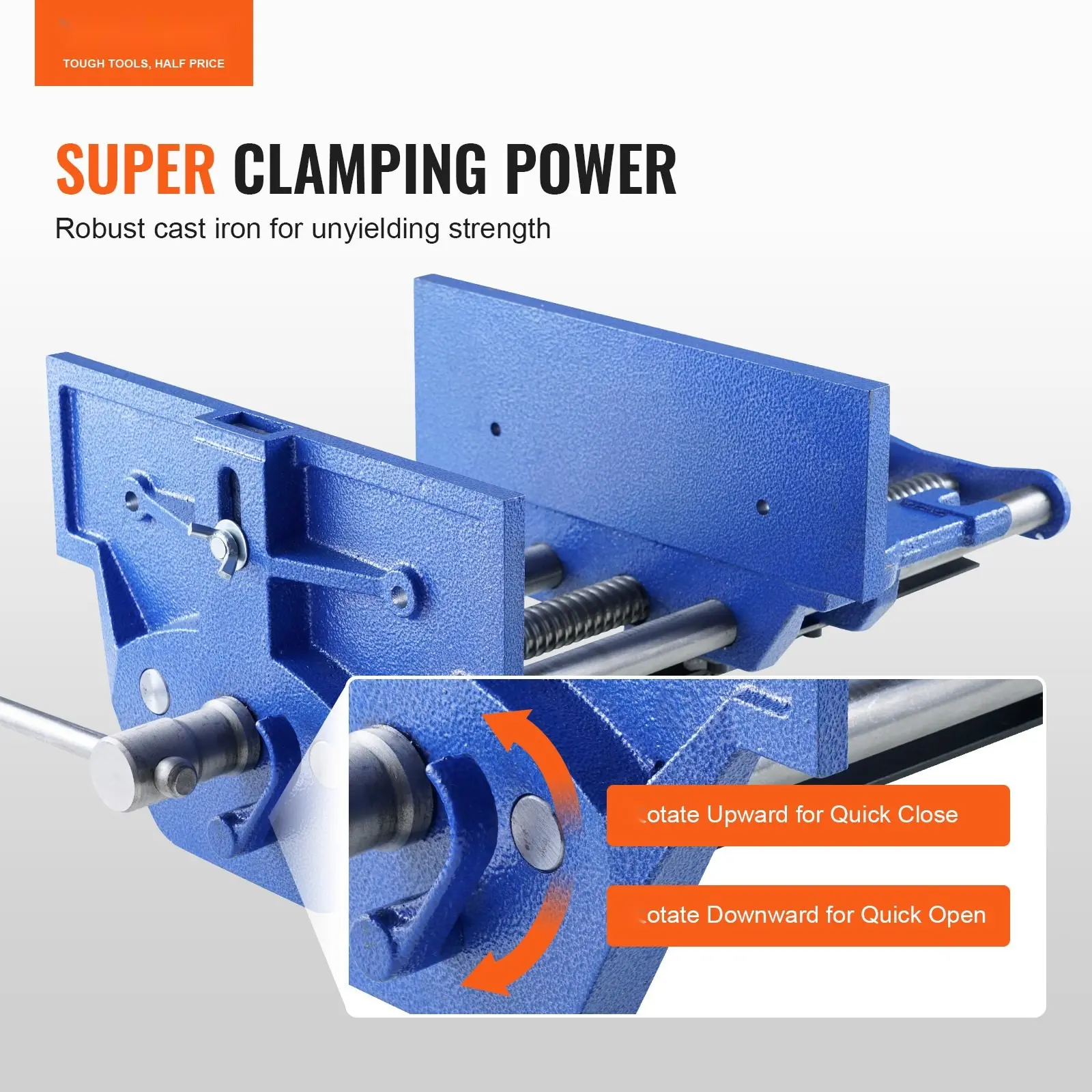 Effortlessly tighten or release the woodworking bench vise in a second! Turn the lever downward to quickly open the clamp for easy placement or removal of your work material. Rotate the lever upward to promptly secure the material in the desired position!
