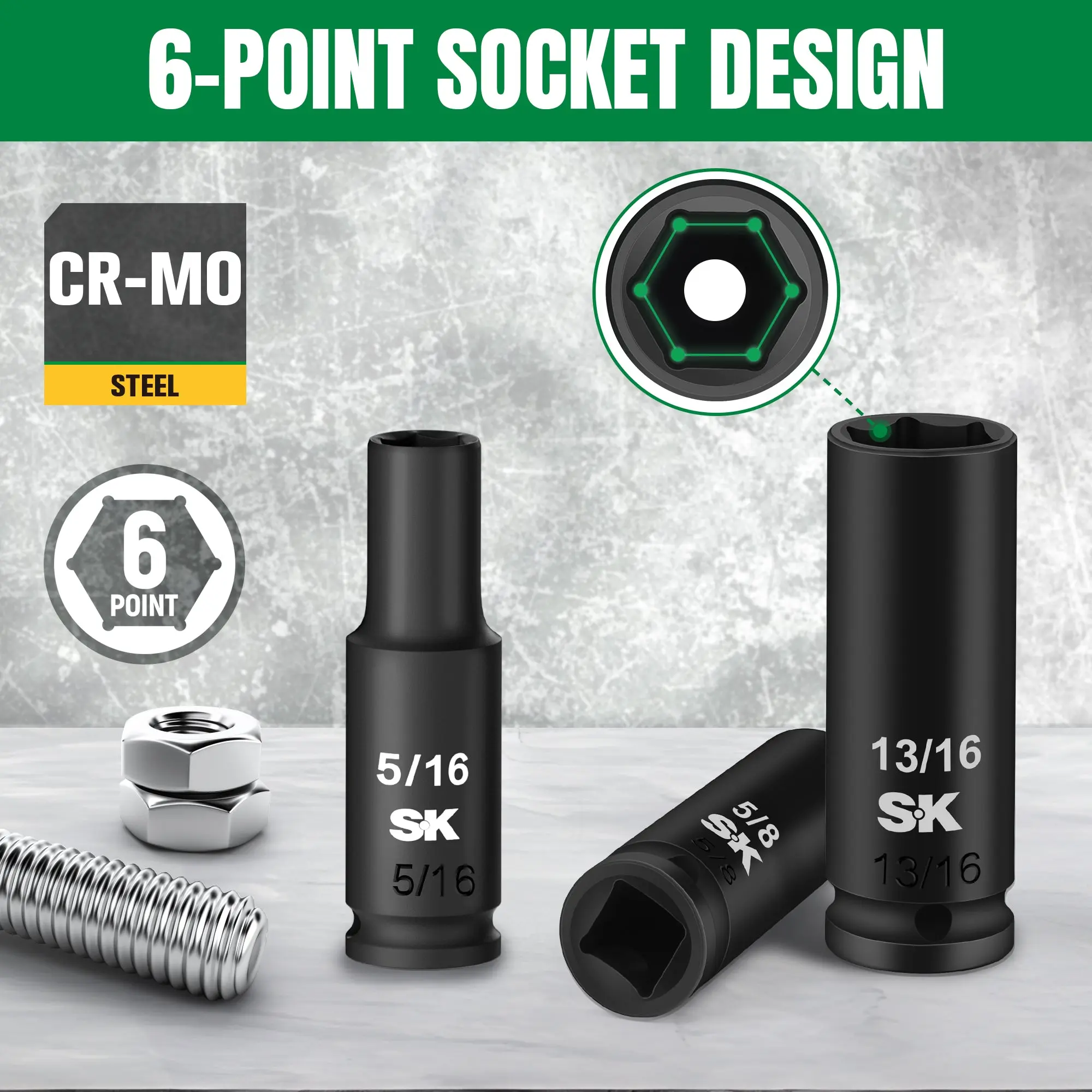 ·6-Point Socket Configuration: Ensures secure fit and maximum contact for high-torque impact applications