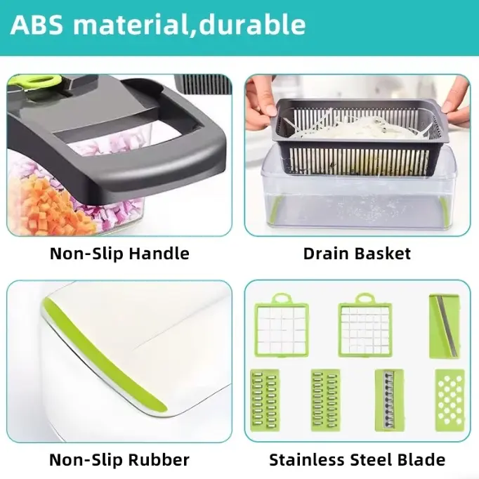 Discover the ultimate kitchen tool for efficient cutting and slicing! This chopper features multiple blades, perfect for vegetables and fruits. Simplify your meal prep with ease. 🍎