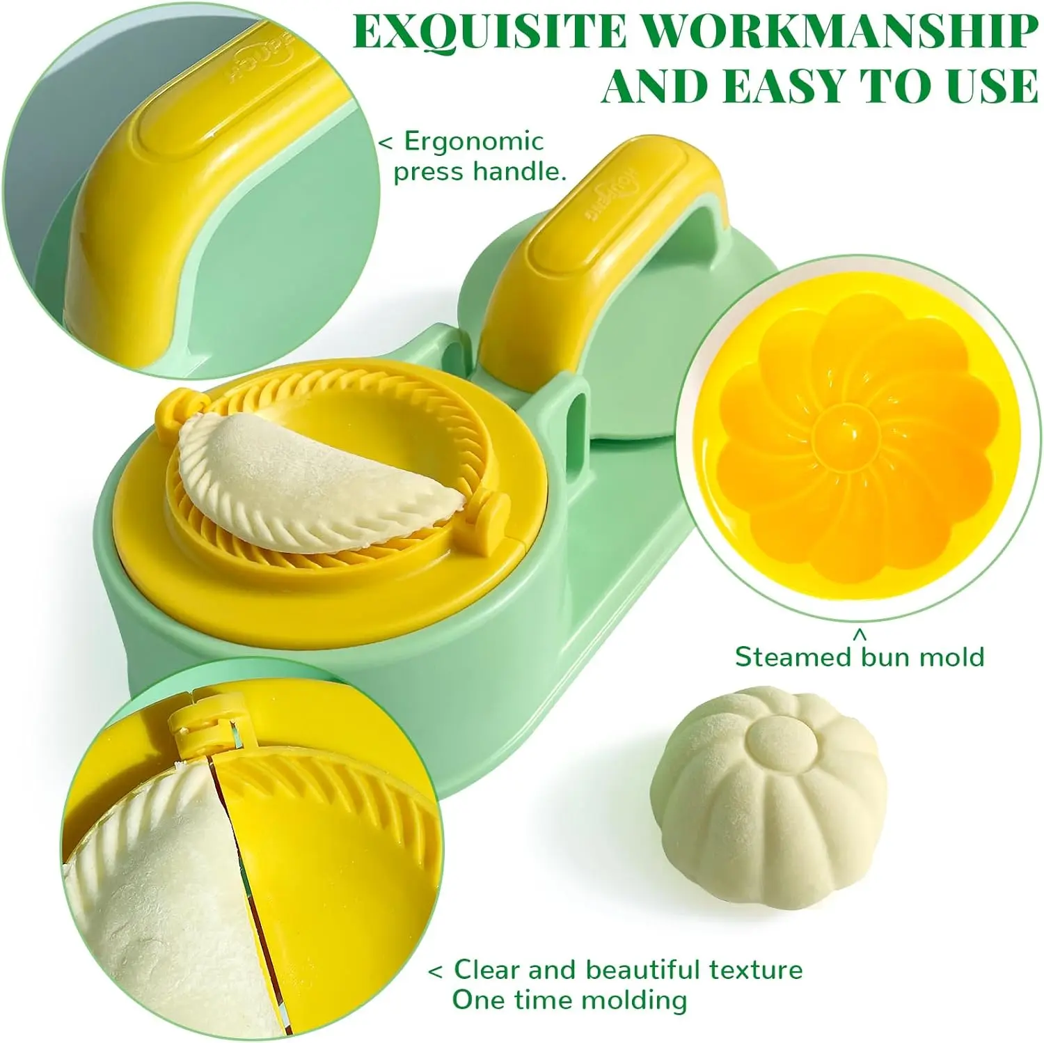 ·3 In 1 Innovative Design: This 3 in 1 dumpling and bun maker can be used to make dumpling, dumpling wrappers and baozi, Easily makes authentic Chinese dumplings, bun and other pocket foods as hours d’oeuvres, desserts, and snacks. Can also be used as an empanada maker, samosa, mini pie maker, ravioli press mold