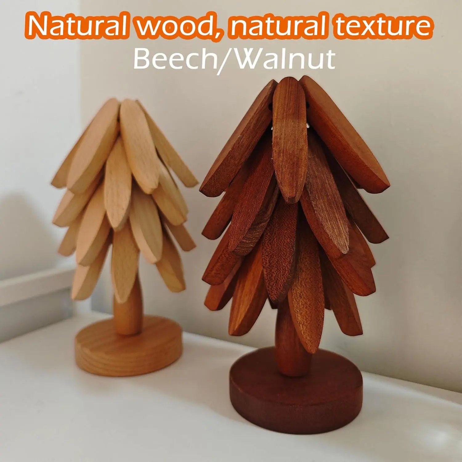 ·【Unique Tree Design】 This wooden tree coaster is designed with the inspiration of tree, it can not only be used as a decoration in the kitchen dining room like a Christmas tree , but also can be used as a storage box for wooden mats to protect the tabletop from hot dishes, it is a best combination of fashion and functionality