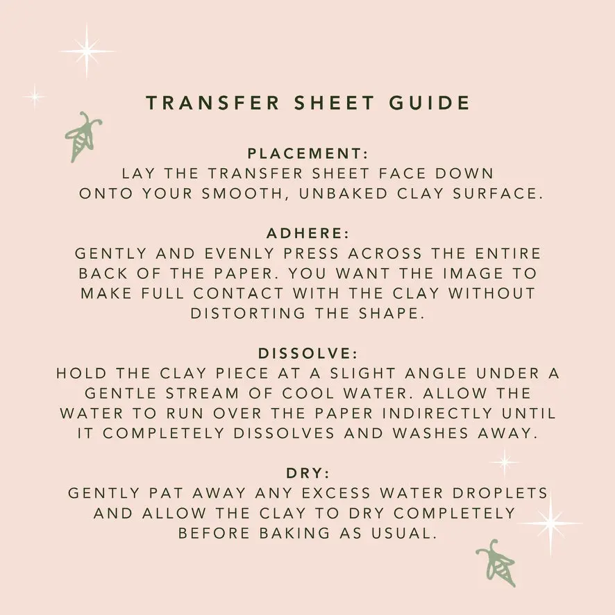 Each transfer measures approximately 4 in × 5.25 in, making it perfect for polymer clay earrings and other small jewelry pieces.