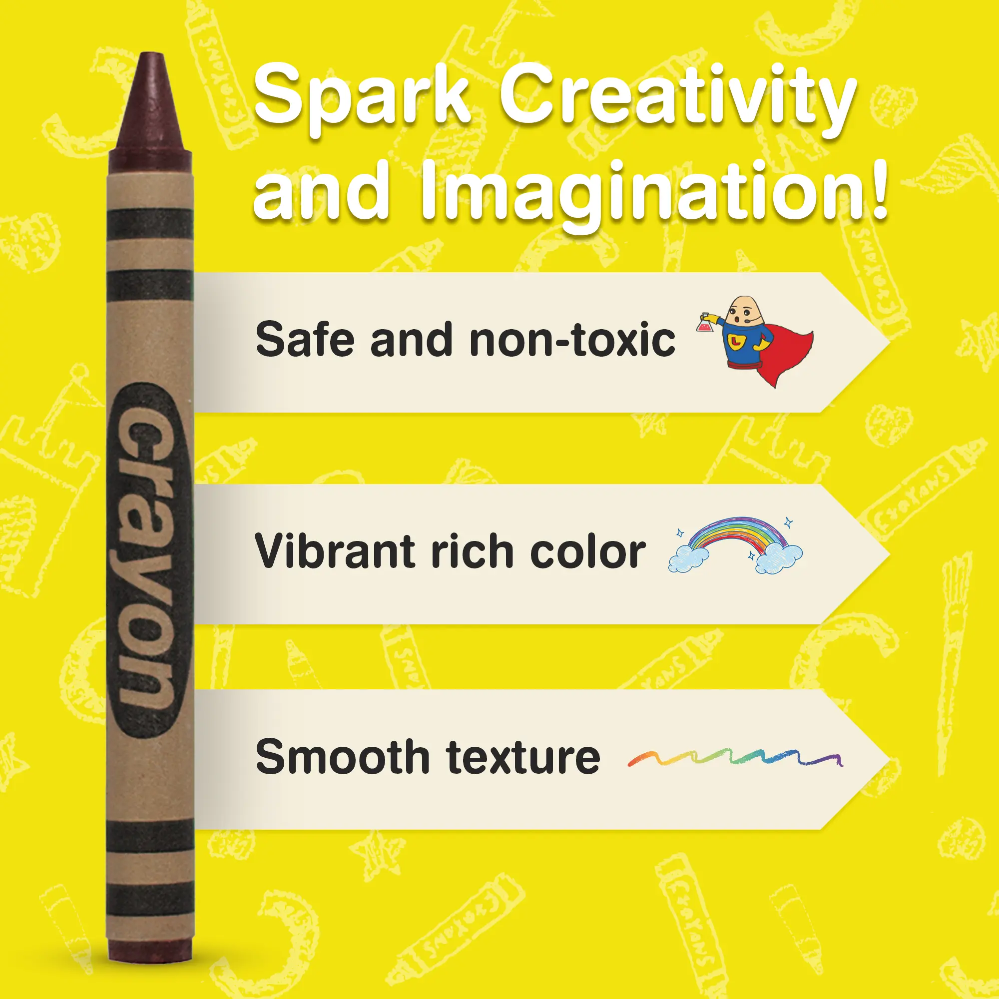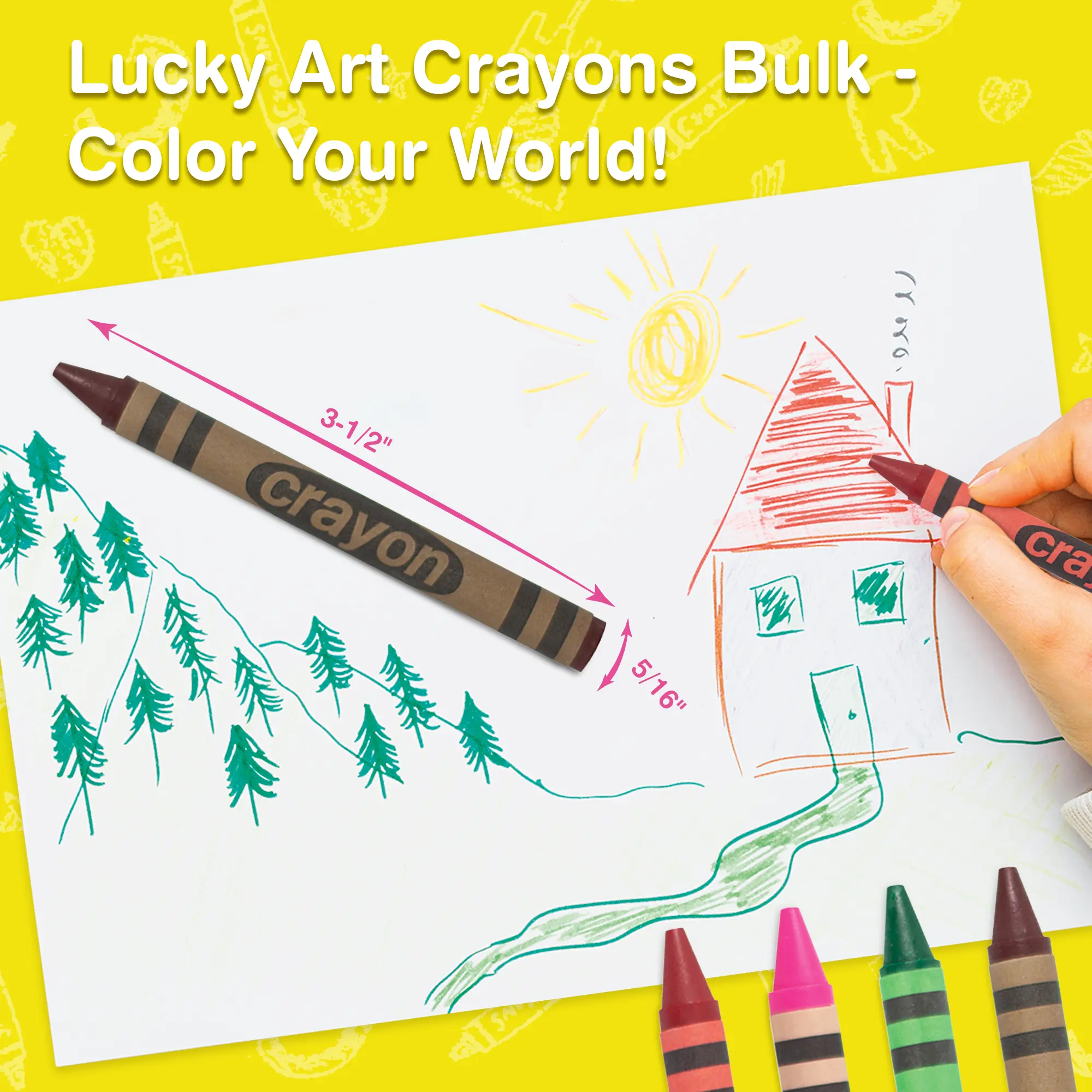 When one color isn't enough, get 80 of it! Lucky Art Crayonology's single-color bulk crayon pack solves the problem of running out of one color before others. Now, you don't have to worry. Each pack contains 80 vivid Brown crayons, with a consistent shade. ASTM F963-23 certified, CPSIA lead-free, and phthalate-free. Perfect for classrooms and parties.