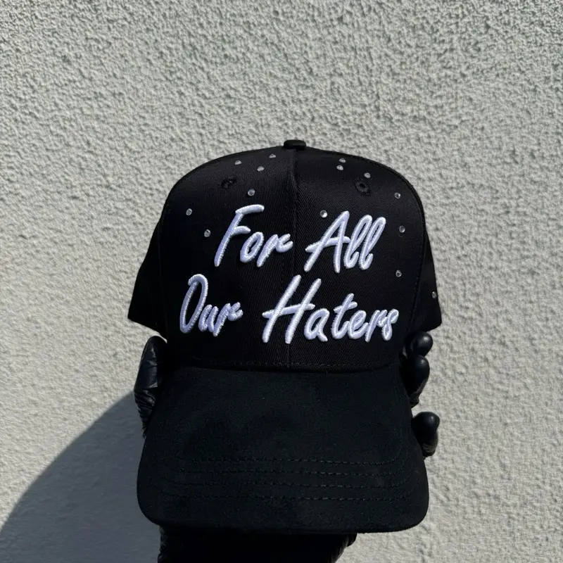 ·Elevate Your Style: The Tombochio 1:1 Dandy Hats for All Our Haters G5 is a bold choice for those who stand out. This black cap features white embroidery and silver studs, adding a touch of flair. Perfect for making a statement.