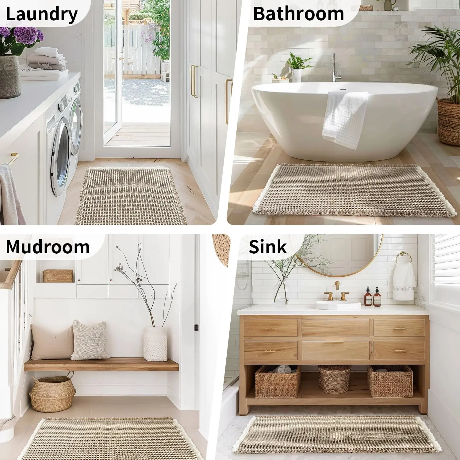 ·Versatile Boho-Chic Decor Accent: Elevate any space with this farmhouse ready boho bathroom rug. Use it by the sink, shower, or bathtub—or even in kitchens, entryways, or RVs. Its stylish texture and quick-dry function blend seamlessly with your decor, adding both function and flair