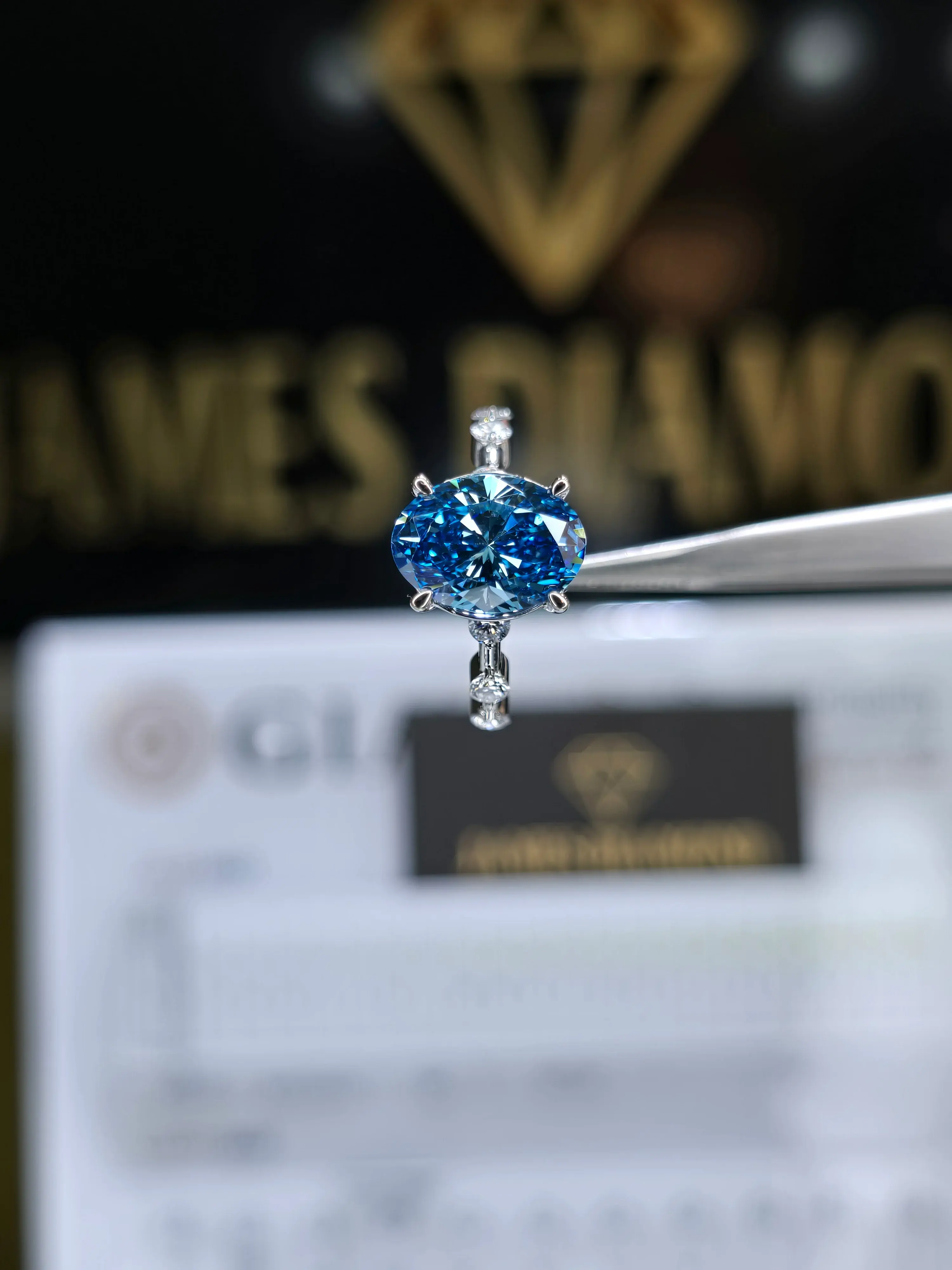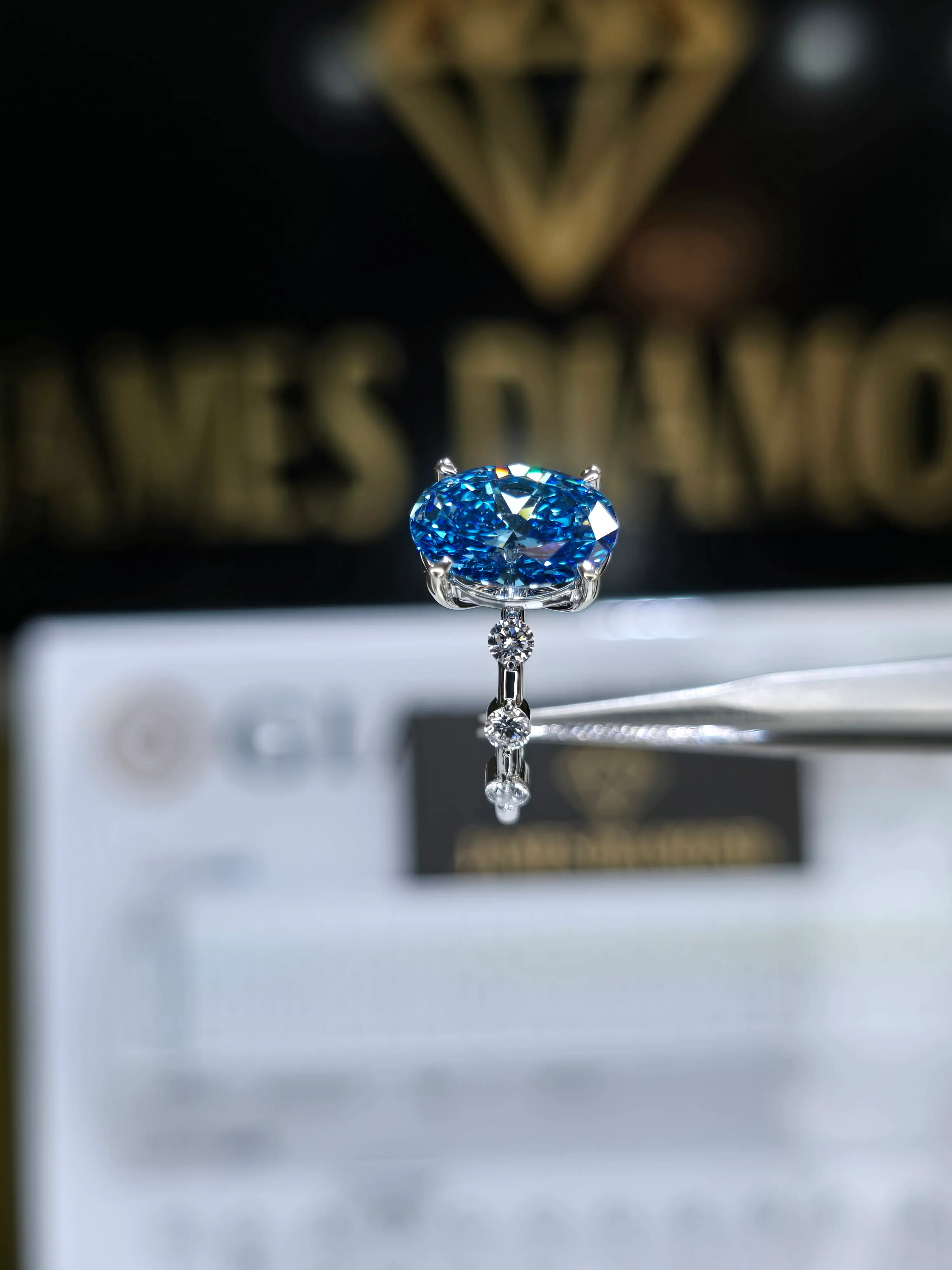 Beautiful Ring 🔥Fancy vivid Blue Oval 3CT / VS Clarity 💍