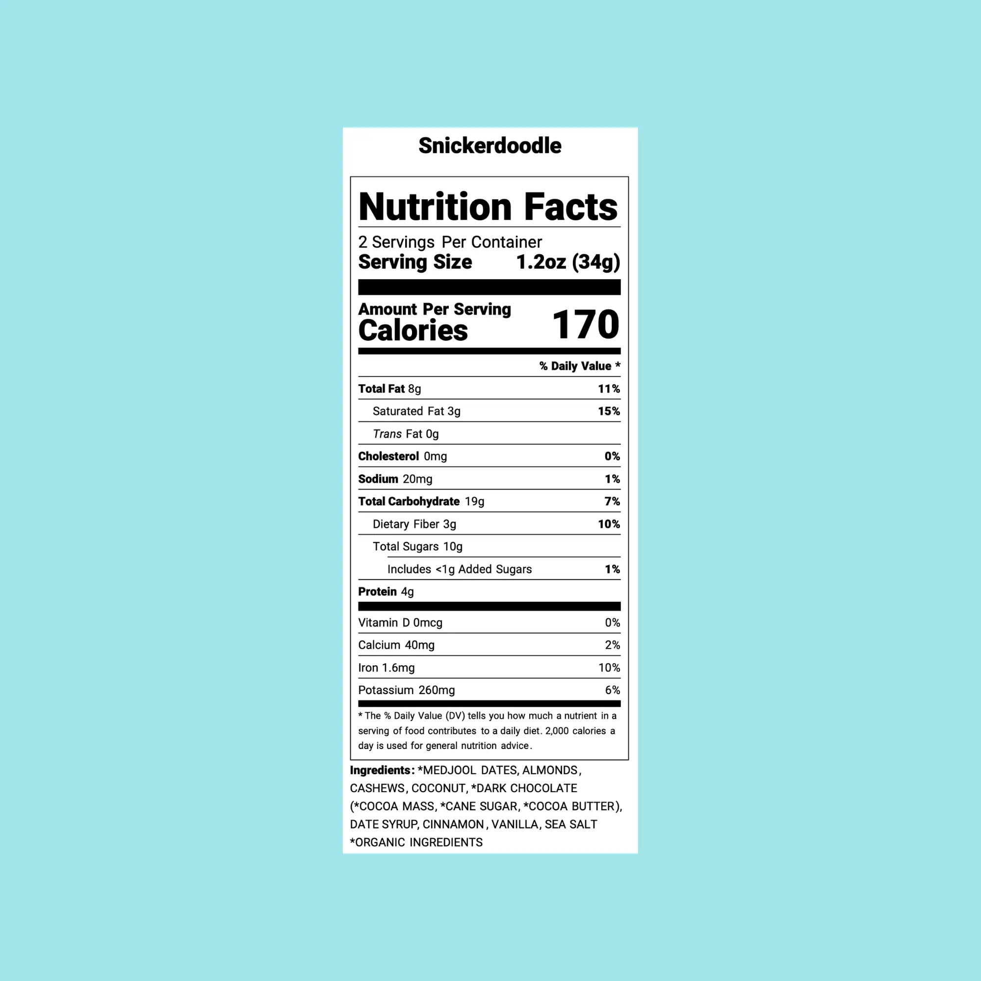 Each bite starts with a soft, naturally sweet Medjool date, generously filled with peanut butter, hazelnut, almond, or our signature snickerdoodle cookie flavor. Made with simple, real ingredients, this lineup delivers the perfect balance of indulgent and satisfying.