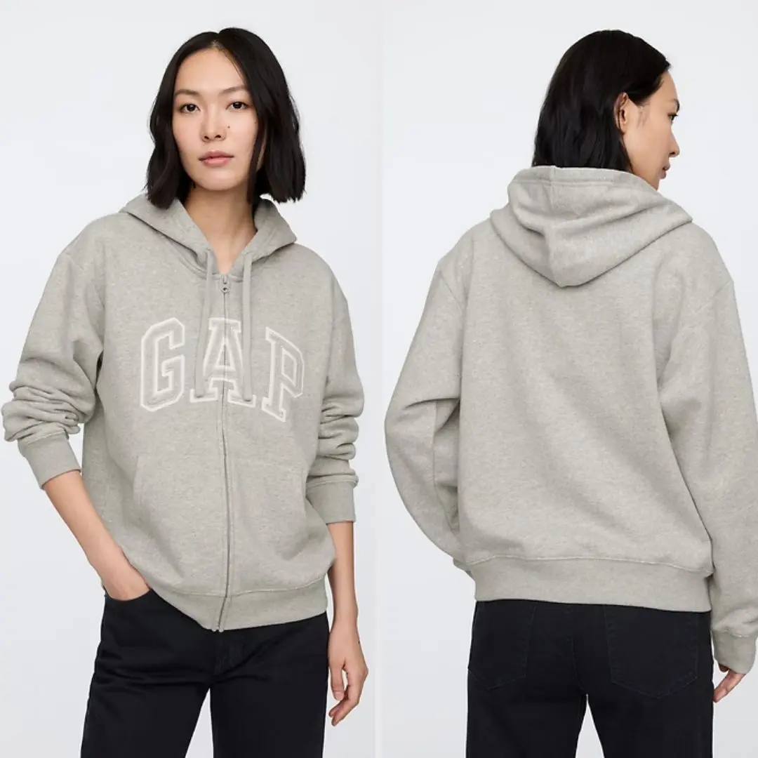 GAP Women Relaxed Logo Zip Hoodie - Comfortable Fleece, Everyday Wear, Soft & Cozy, Perfect for Casual Outfits