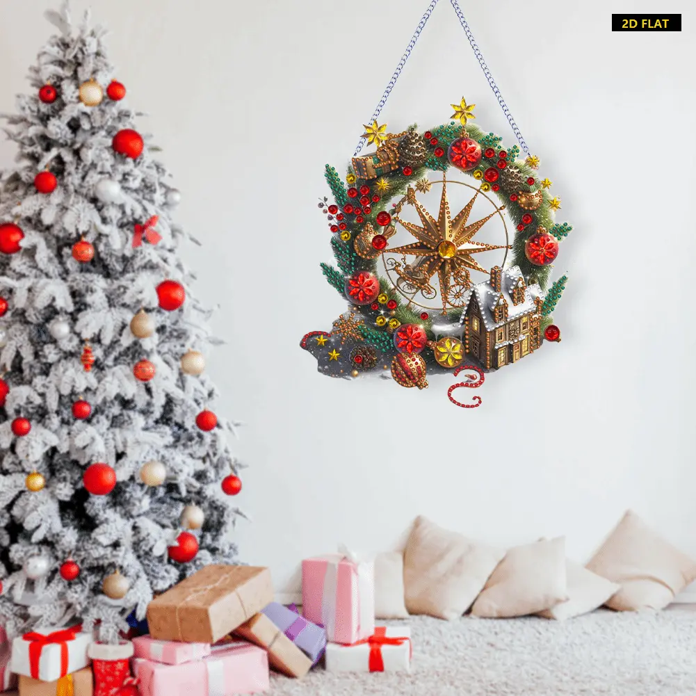 Xmas Theme 2D Flat DIY Special Shape Hanging Diamond Art Kits Diamond Painting Set Rhinestone Diamond Art Window Pendants Diamond Art Pendant Window Hanging Art for Home Decor Features: