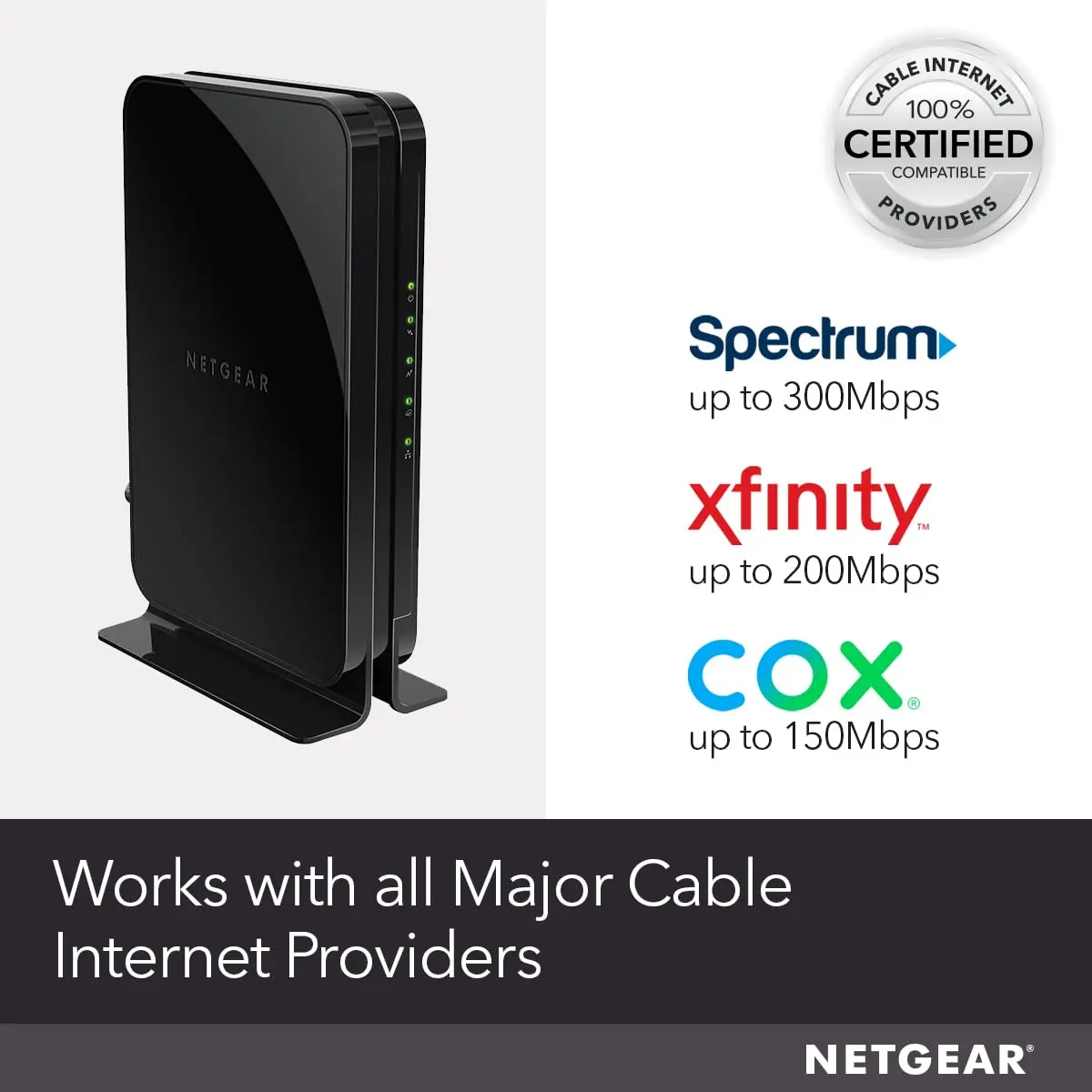 NETGEAR Cable Modem CM500 - Compatible with Cable Providers incl. Xfinity. Cox | for Plans up to 300Mbps | DOCSIS 3.0 | Ethernet | Single Band