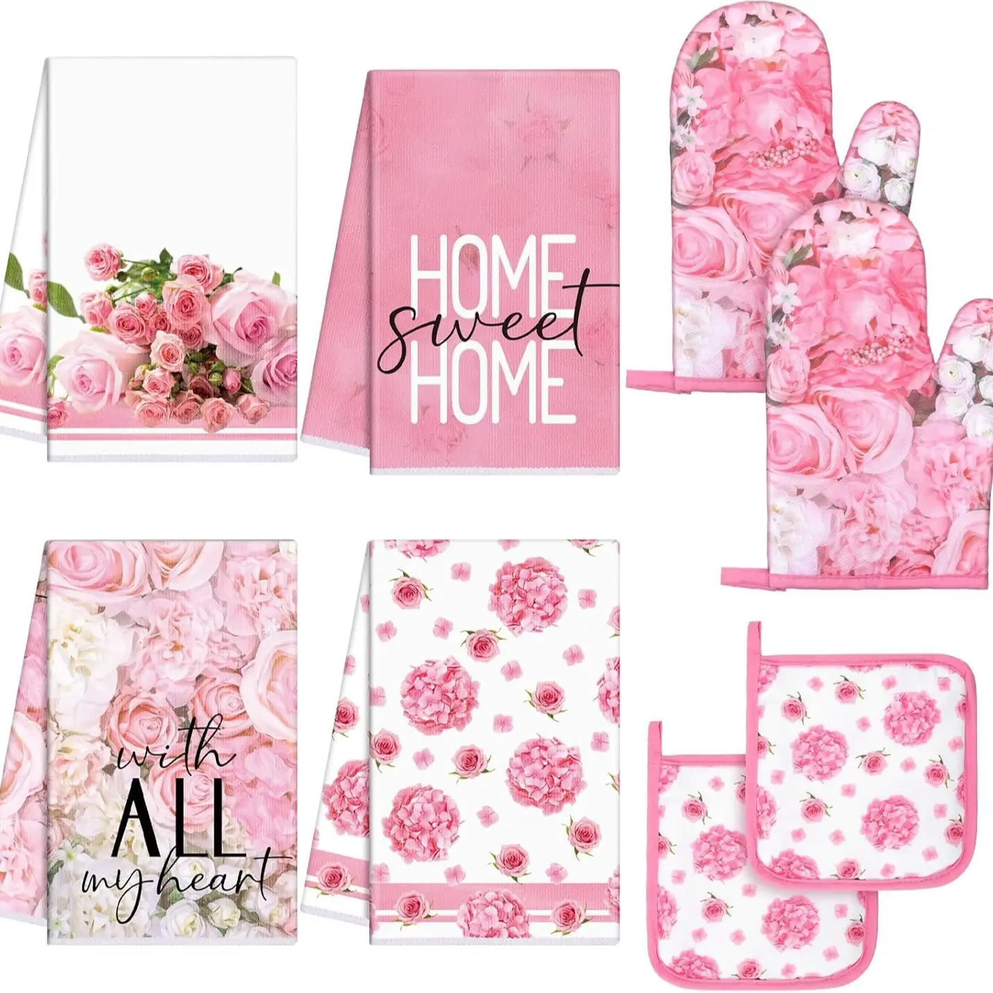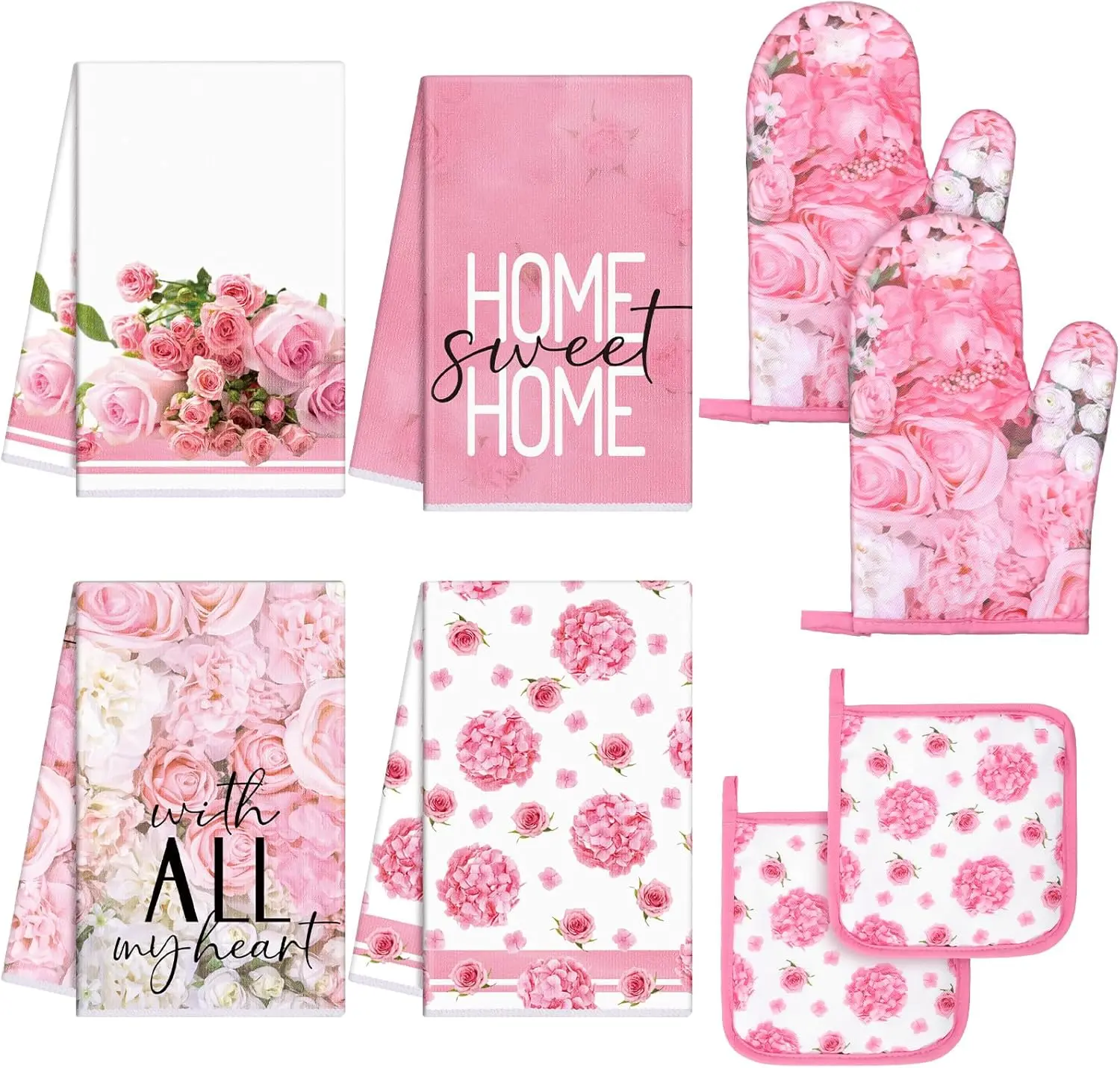 This set includes 8 pieces of pink rose kitchen towels and dishcloths. Perfect for everyday use, these items are absorbent and stylish. They add a touch of elegance to your kitchen. Ideal for drying dishes or wiping surfaces, these towels are a must-have for any kitchen.