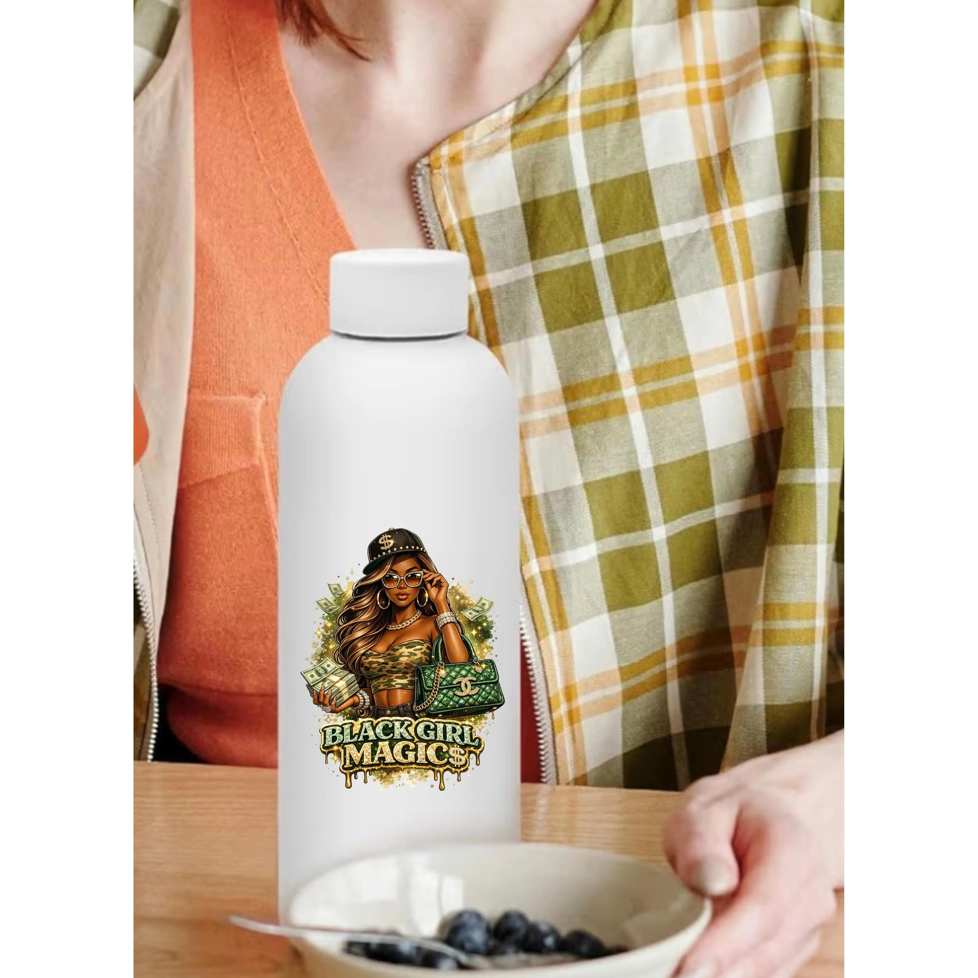 Celebrate your power and presence with this striking Black Girl Magic tumbler. Designed for the bold, the brilliant, and the unapologetically you, this tumbler keeps your favorite beverages at the perfect temperature while making a statement. Double-walled insulation maintains hot drinks hot and cold drinks cold for hours. The durable, fade-resistant design withstands daily use and dishwasher cleaning. Perfect for coffee, tea, water, or whatever fuels your day. An empowering accessory that belongs in every confident woman's collection.