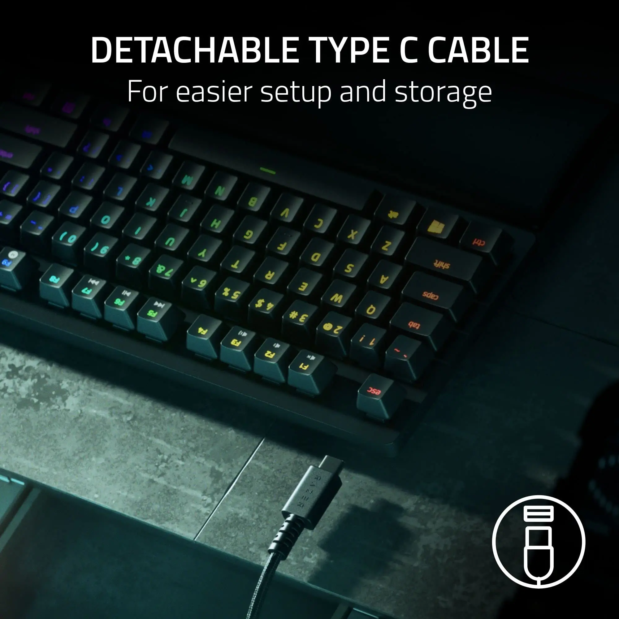 ·DETACHABLE TYPE-C CABLE — Unpack, plug and play with minimal fuss for all LAN parties and tournaments, as a cable latch ensures that it stays securely connected during gameplay