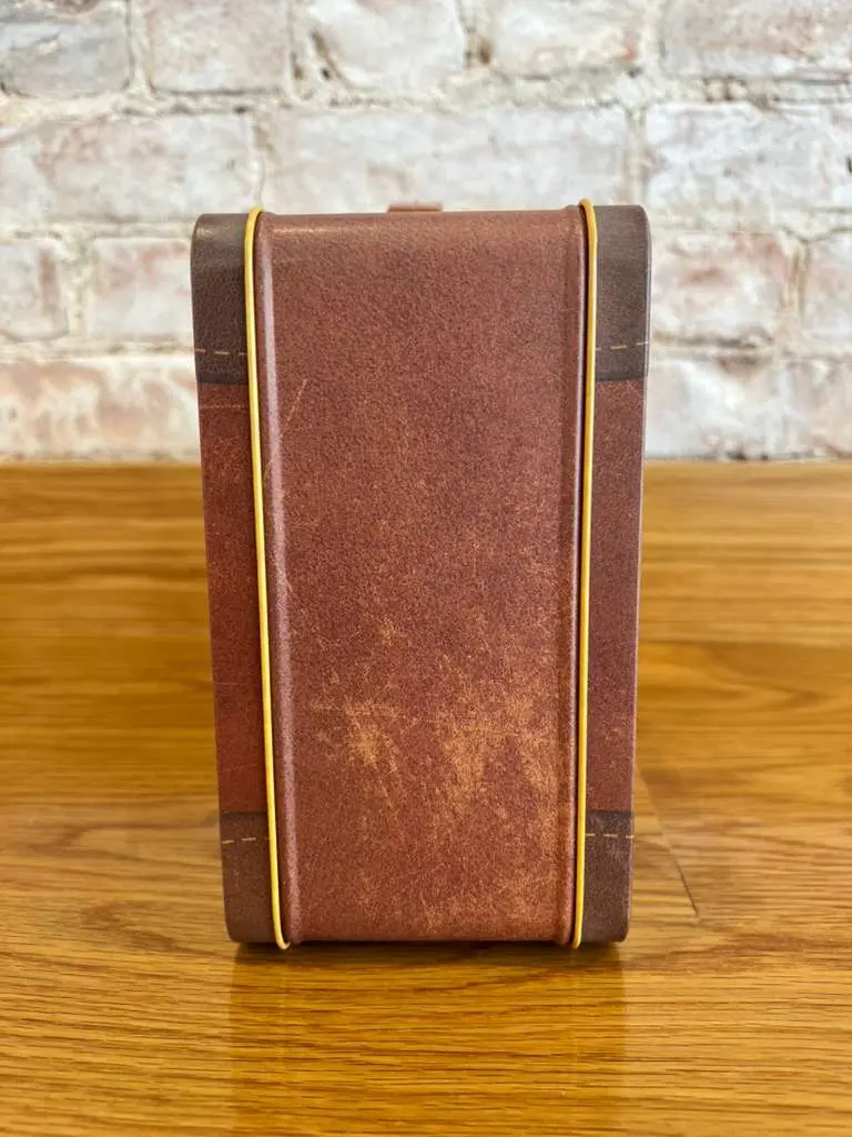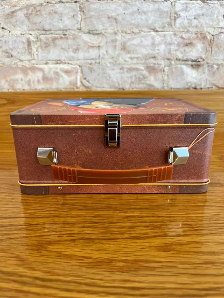 This is a 2025 AMC exclusive popcorn bucket lunch box suitcase from the movie Paddington in Peru. It is a high quality and durable popcorn bucket designed to resemble Paddington's trusty travel suitcase. Since it is made out of metal, this popcorn bucket gives a much more realistic feel compared to traditional plastic buckets. It is one of the larger specialty buckets with a 120 ounce capacity and the lid is secure enough for you to shake and mix your popcorn with butter and salt without having butter flying around everywhere. It is a dual purpose design so you can easily use it as a permanent lunch box, desk organizer, or display piece for your movie collections.
