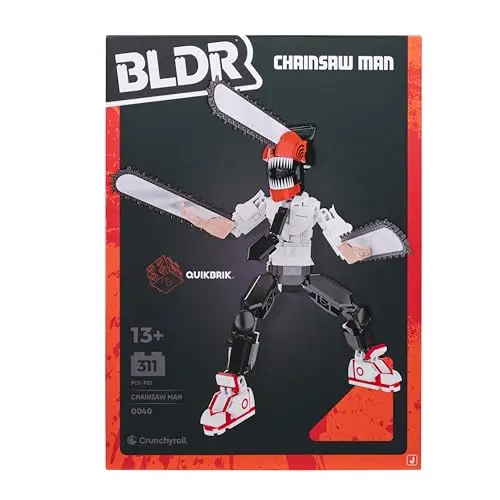 Details: Build your heart out with the BLDR Chainsaw Man Buildable Action Figure Construction Set 0040. This 311 piece set is based on the popular anime Chainsaw Man and stands 10-inches tall when fully assembled. It features 14 points of articulation and can be posed to recreate your favorite battle scenes. It also includes special features like opening jaws and unique chainsaw pieces in addition to printed elements and authentic details from the anime. Equipped with our QuikBrik piece, builders can construct an exceptionally sturdy and posable base model quickly and easily. BLDR bricks are compatible with all major construction brands, ensuring endless creativity. Officially licensed Chainsaw Man product from Jazwares.
