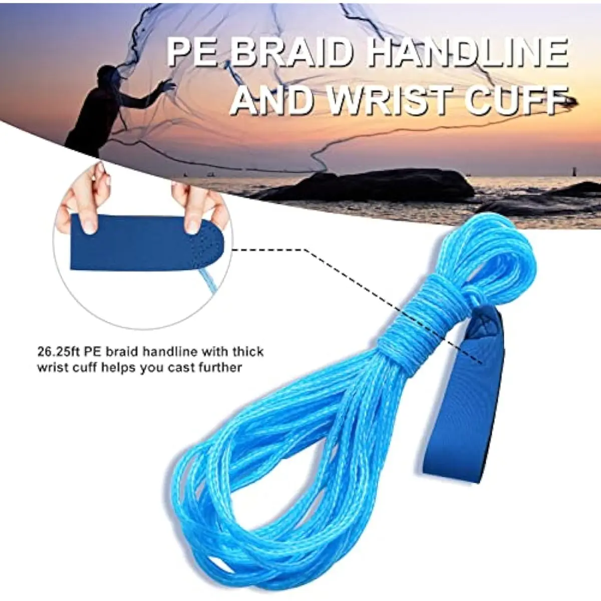 Handmade and Premium Material: Handmade, durable, copolymer monofilament made, the cast net is easy to throw. Non-tangling horn design. Designed for both beginner and veteran fishermen