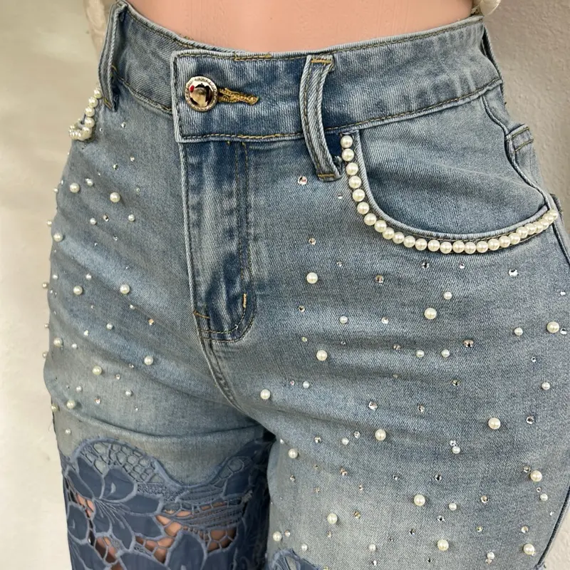 Sky Blue Denim Shorts with Embellished Carved Buttons for Women