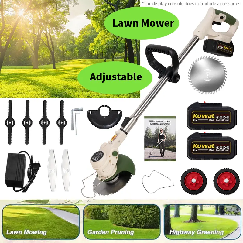 KONNOB Portable Home Cordless Electric Lawnmower, Garden Weeder/Wireless Mower Features 3 Blade Types And Two High-capacity Lithium-ion Batteries Powerful Performance for Lawns, Gardens, And Yards Tool Men's Gift