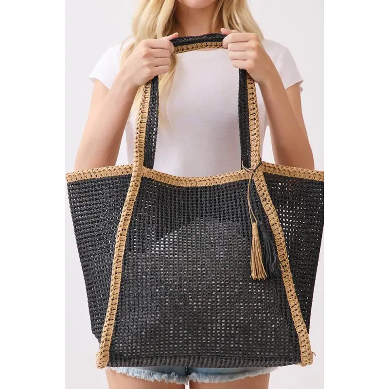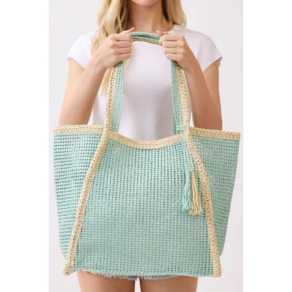 The Tassel Two-Tone Woven Straw Tote is the perfect blend of effortless style and everyday functionality. Designed with a beautiful woven texture and contrasting trim, this oversized tote brings a relaxed coastal vibe to any outfit. The lightweight woven construction keeps it breathable and easy to carry, while the decorative tassel accent adds a playful yet chic touch.