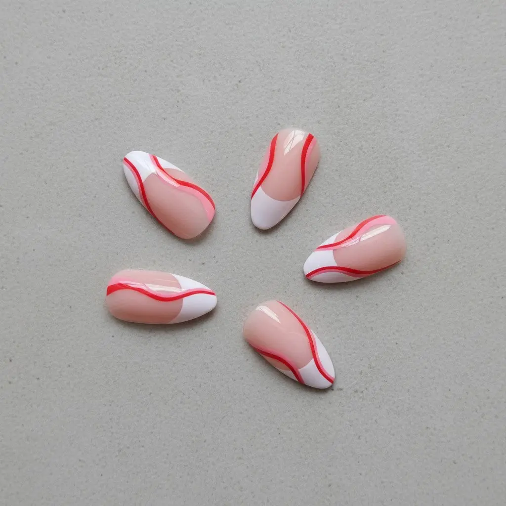 Abstract White and Red French Ready-to-Wear Manicure (press-on nails).