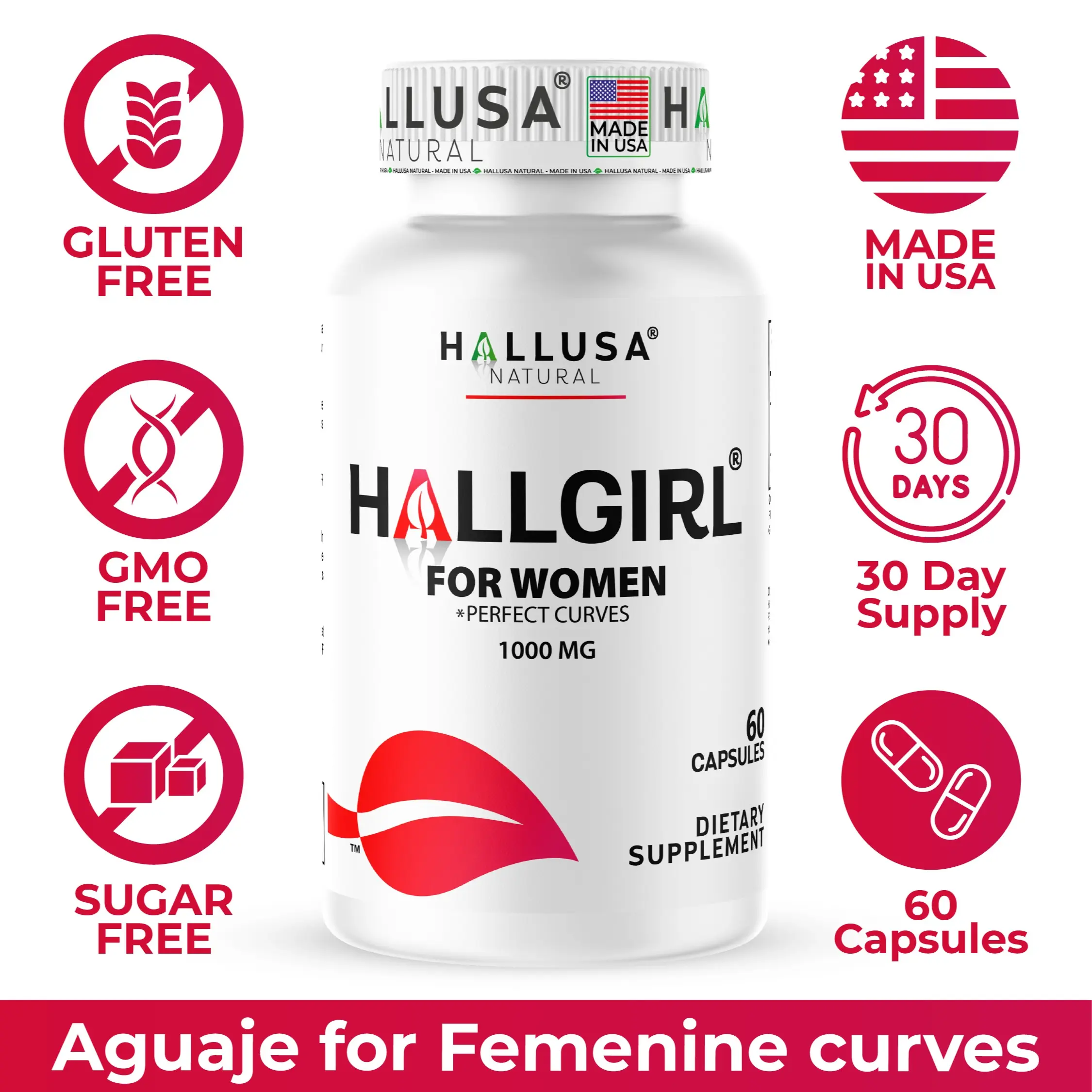 Introducing Hallgirl Aguaje for women 1000 MG - a dietary supplement designed with women's wellness in mind.