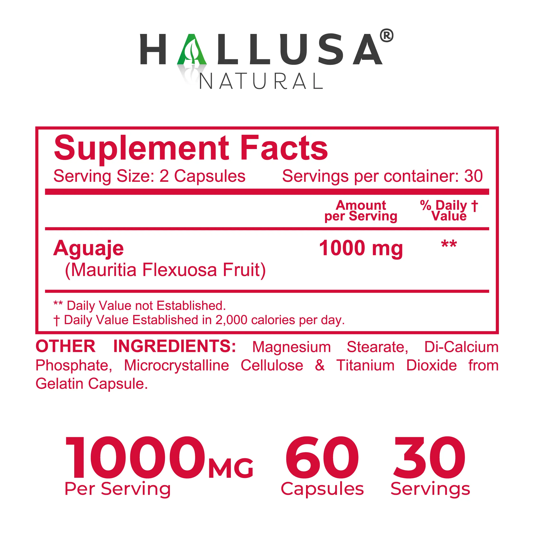 Hallgirl Aguaje for women 1000 MG - Supplement Dietary Fruit Aguaje for 60 Capsules - HALLUSA NATURAL