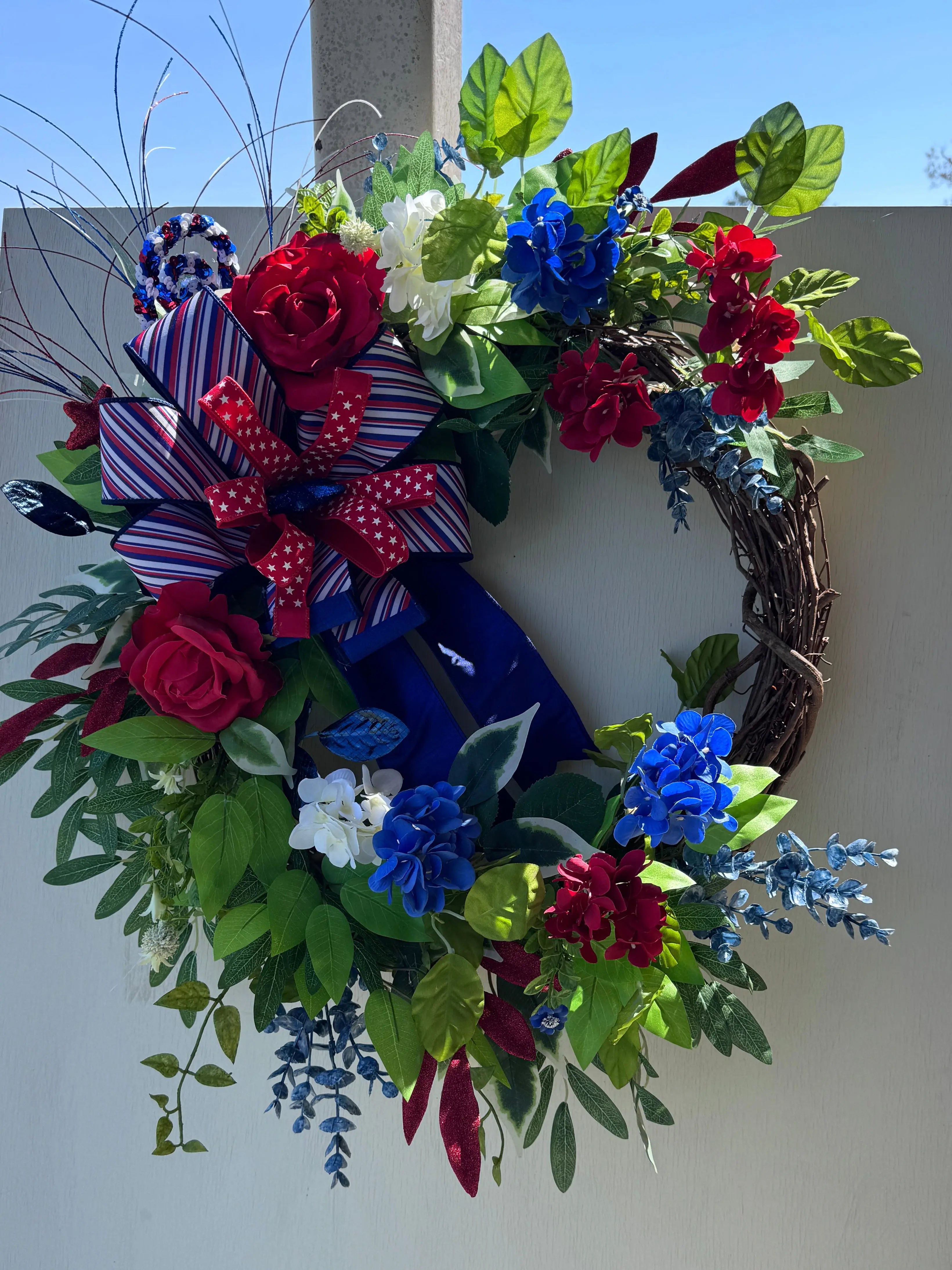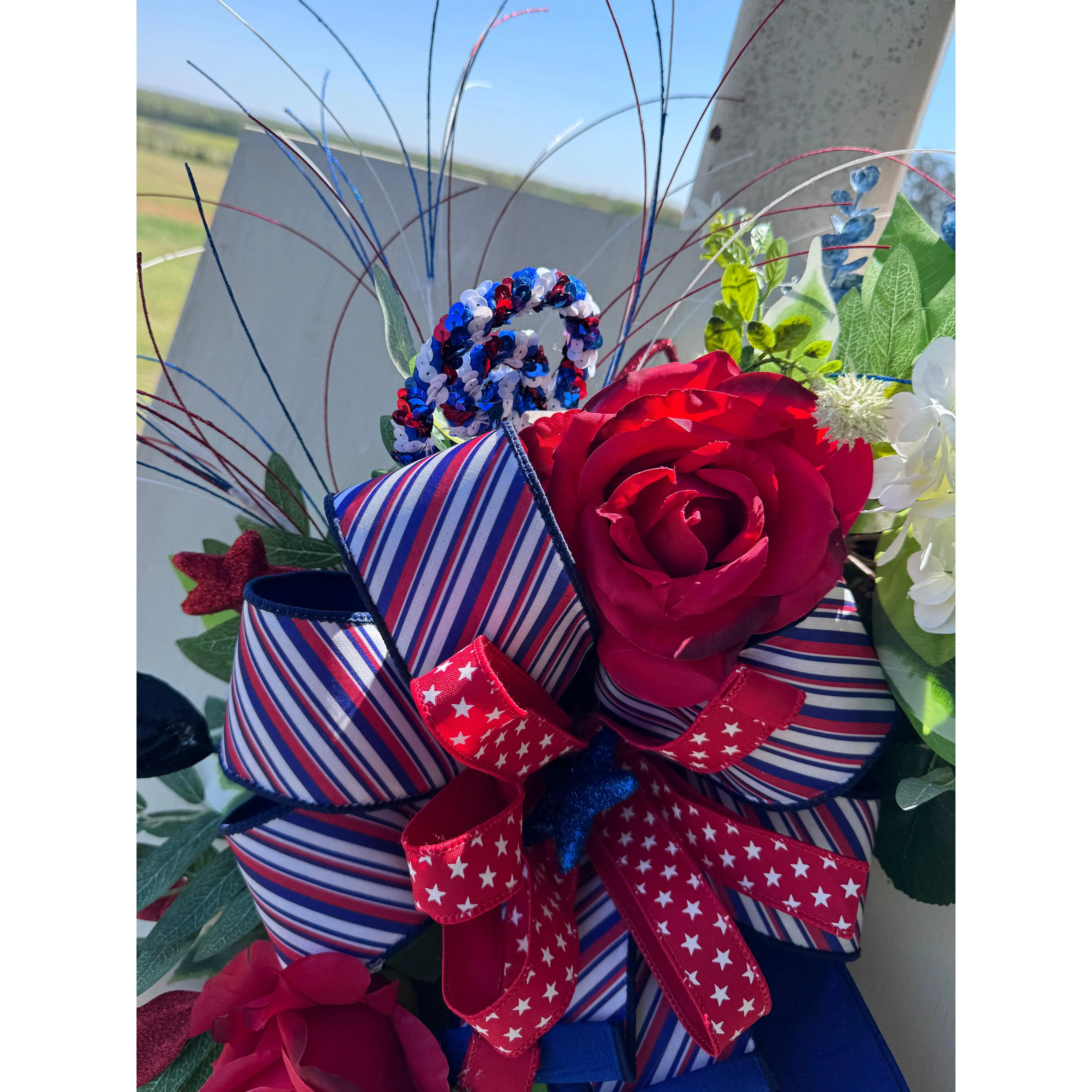 This design blends classic red, white, and blue tones with a garden-inspired feel—making it perfect for America 250 celebrations, Memorial Day, Fourth of July, and full summer display.