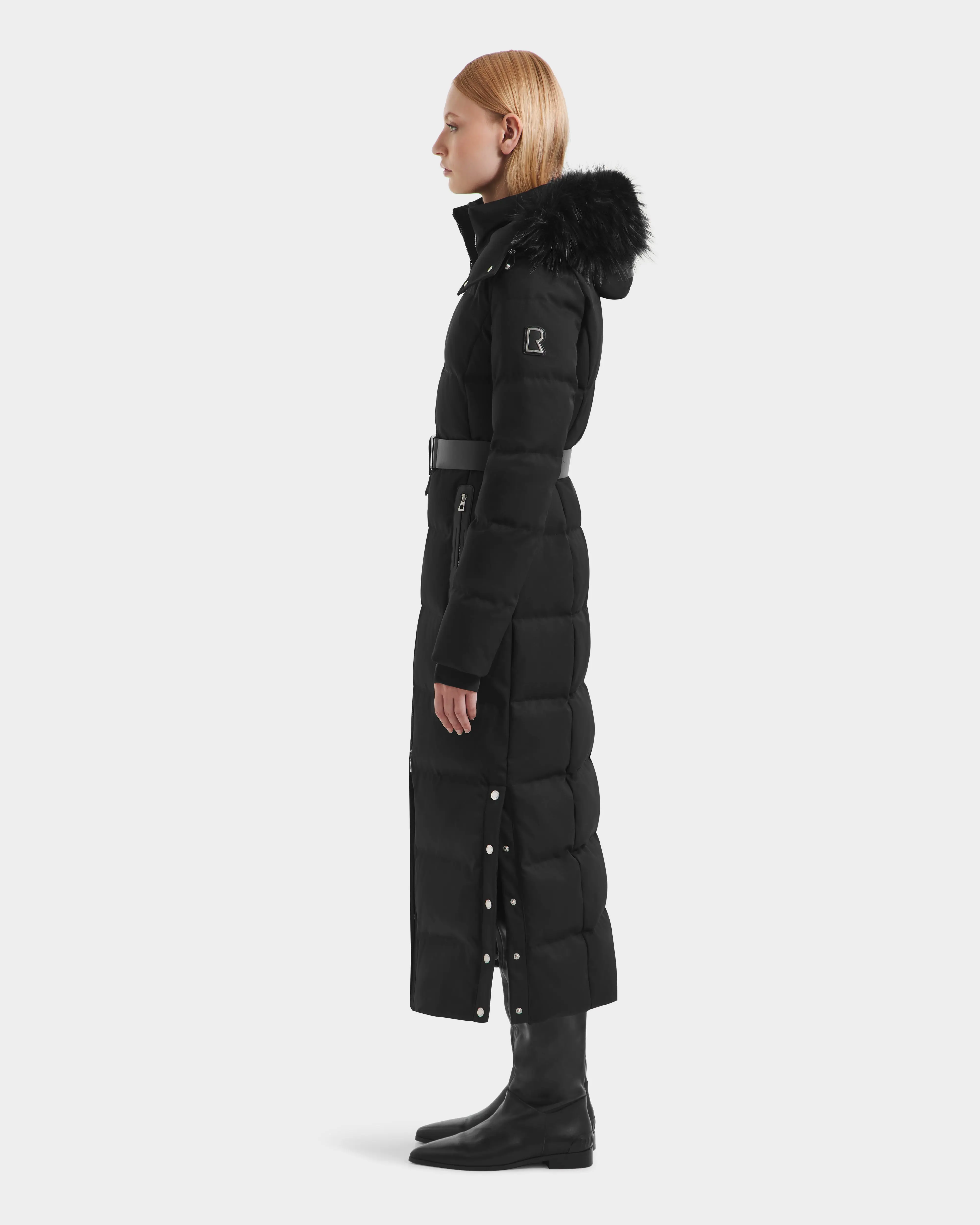 The IZABELLA H by RUDSAK is a full-length women’s puffer built for warmth, elegance, and high function. Crafted from wind- and water-resistant fabric, it’s insulated with a high-loft 90/10 RDS-certified down fill. Details include a removable faux fur trim, vegan leather belt, and a two-way front zipper for flexible wear. Inner backpack straps offer easy carrying, making this coat ideal for cold-weather commutes, travel, or city strolls in elevated style.
