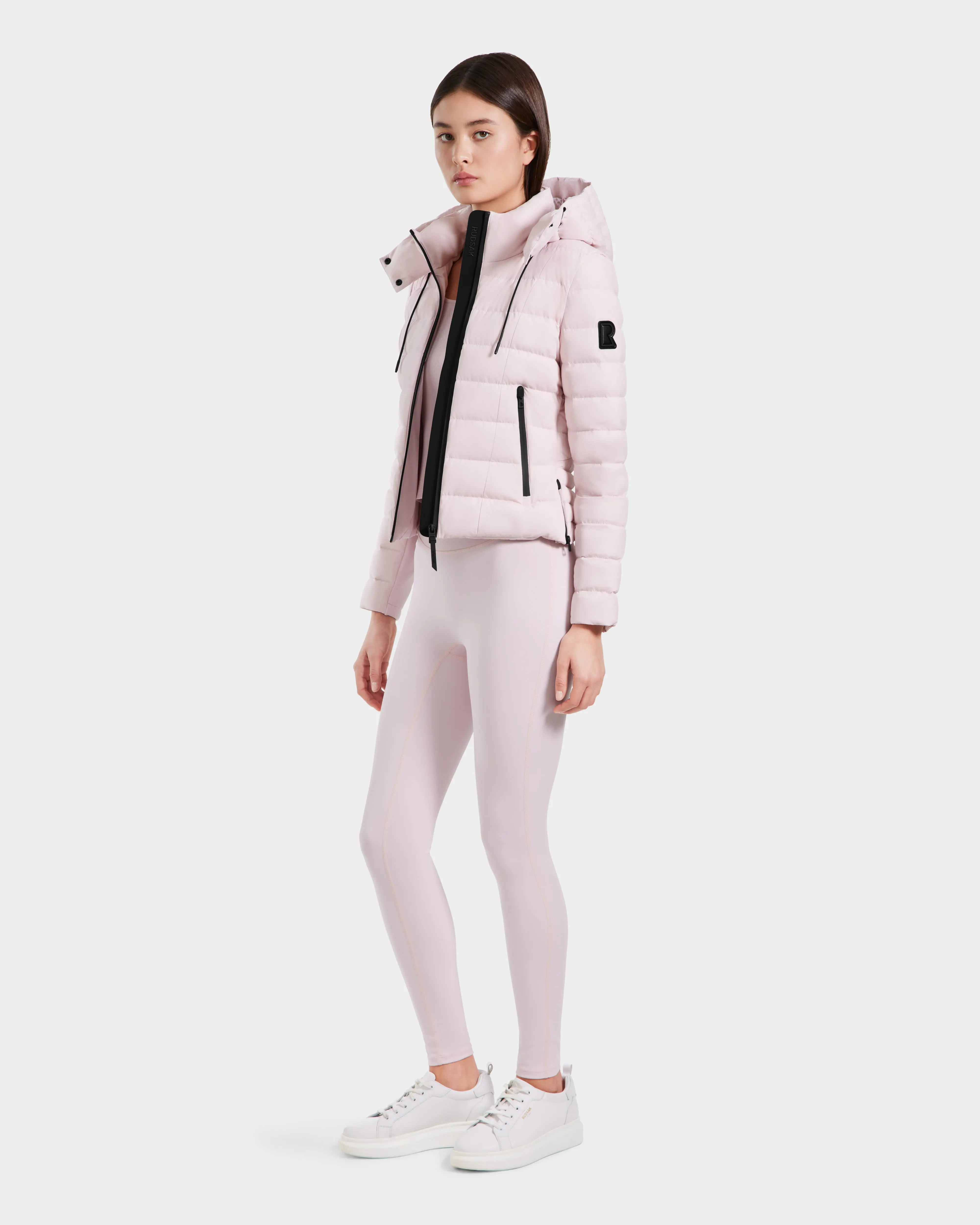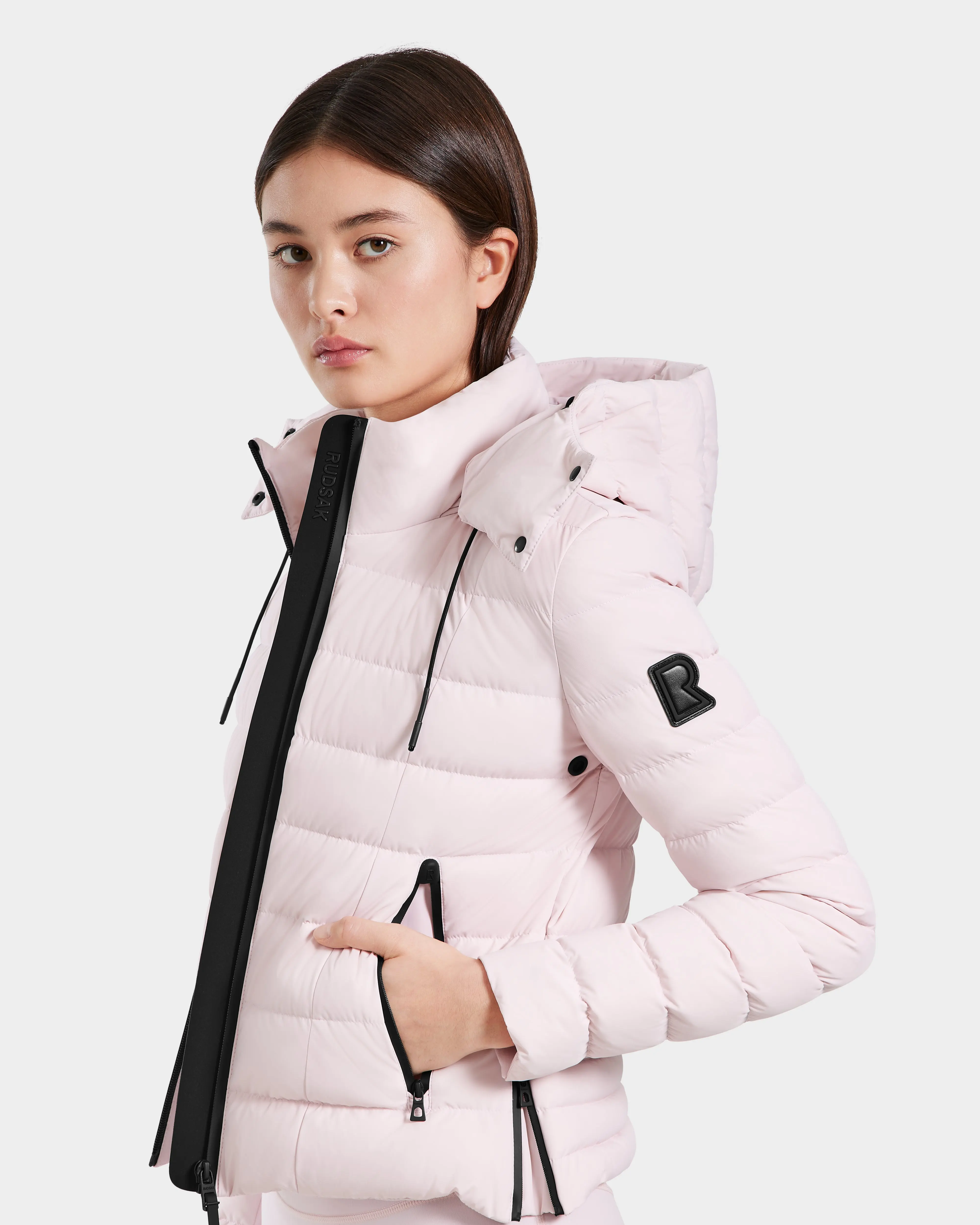 The MELISSA by RUDSAK is a fitted waist-length lightweight down coat for women. With a slight peplum finish and zippered side vents, paired with double jersey panels under each arm, this puffer allows for maximum movement and comfort. Designed in our ultra-light and ultra-resistant featherlight material, it is insulated with premium RDS certified down to ensure a maximum warmth-to-weight-ratio. Perfect for cool Spring and early Fall weather, this water and wind-resistant down jacket features a removable hood, as well as waterproof zippers for extra resistance.