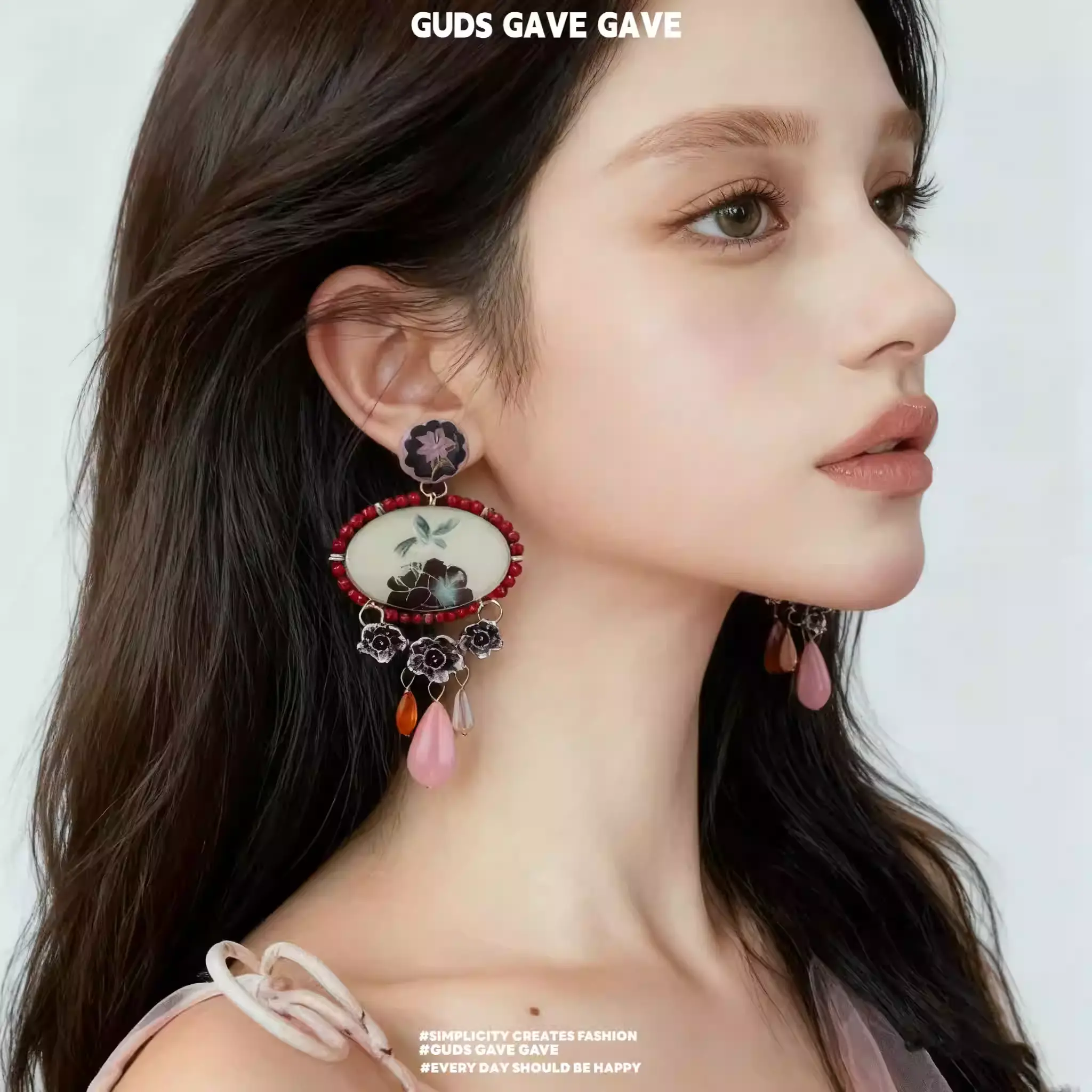 These stylish earrings from GUDS GAVE are designed for 2025 fall and winter, featuring a retro niche bird print and classic teardrop pendant shape.
