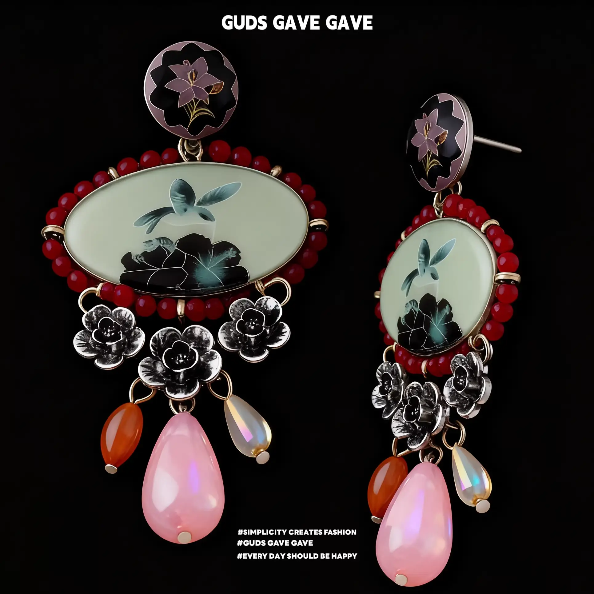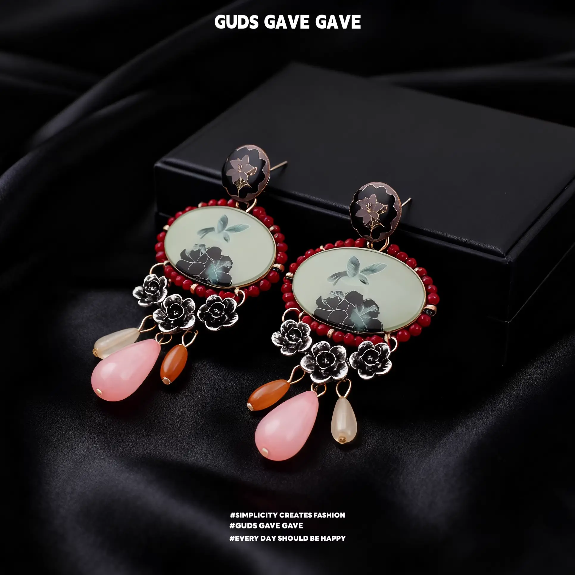 GUDS GAVE Vintage Chinese Palace Style Relief Flower Square Earrings | Exaggerated Heavy Duty Enamel Earrings