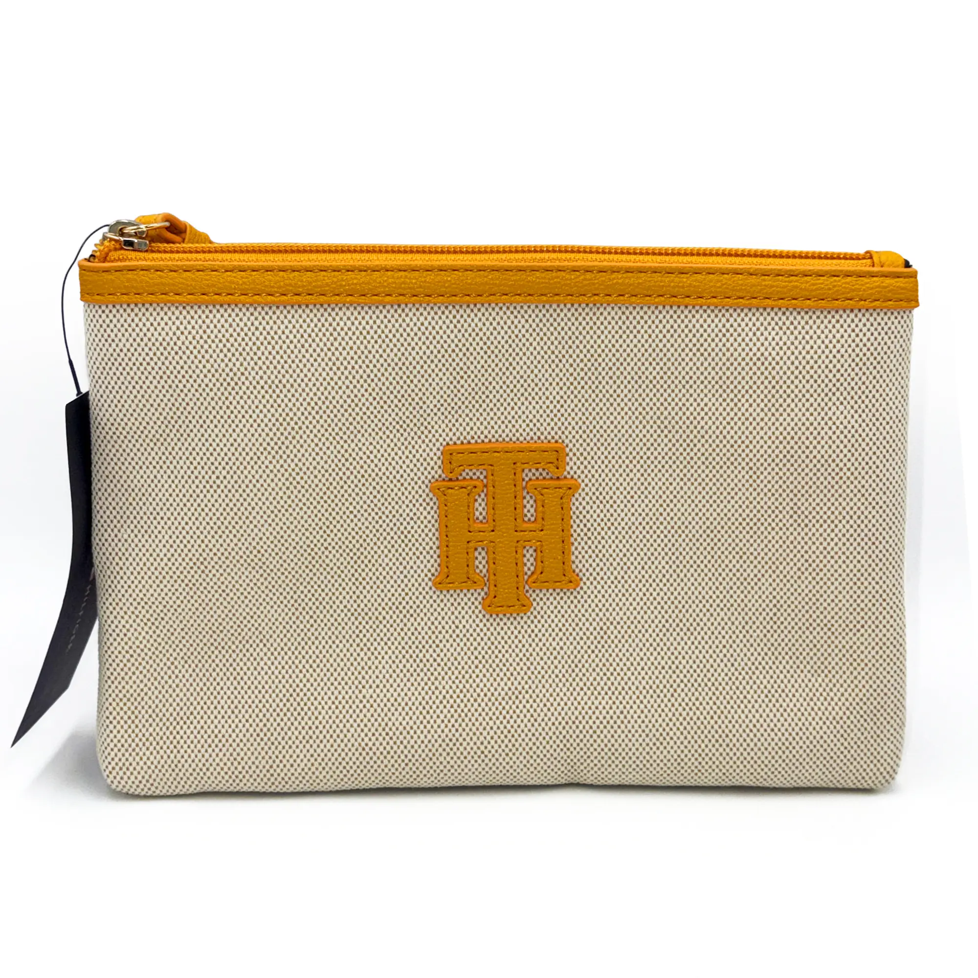 - Features the iconic TH monogram front and a smooth zip-top closure.