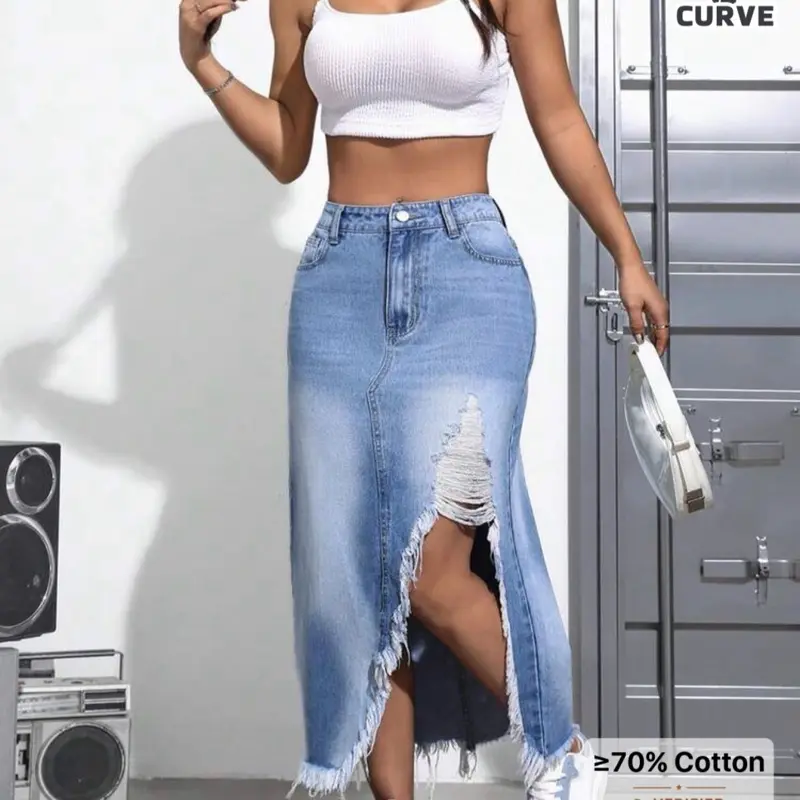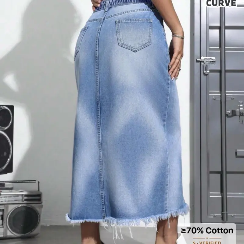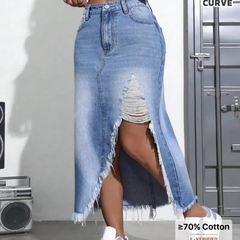 🌞 SXY Plus Size High Waist Raw Edge Slit Summer Fashion Casual Denim Skirt 🌞