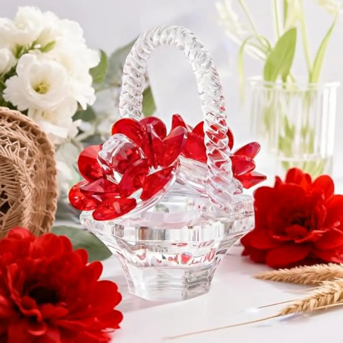 Flower always bring a good feeling to everyone. The faceted glass flower basket is very shinning and high quality