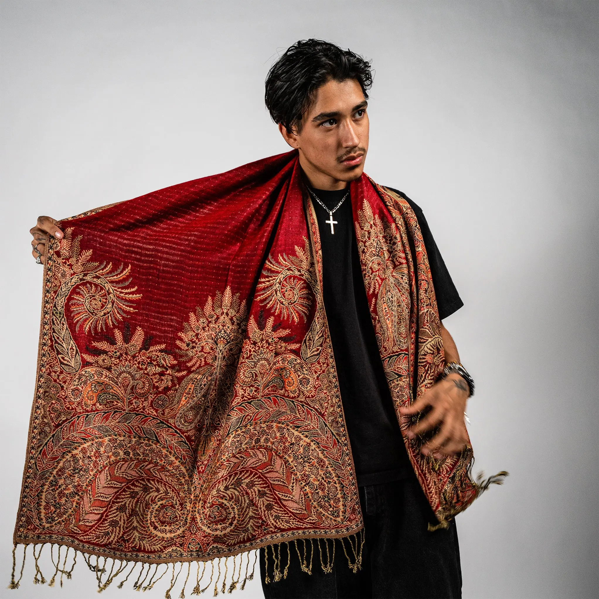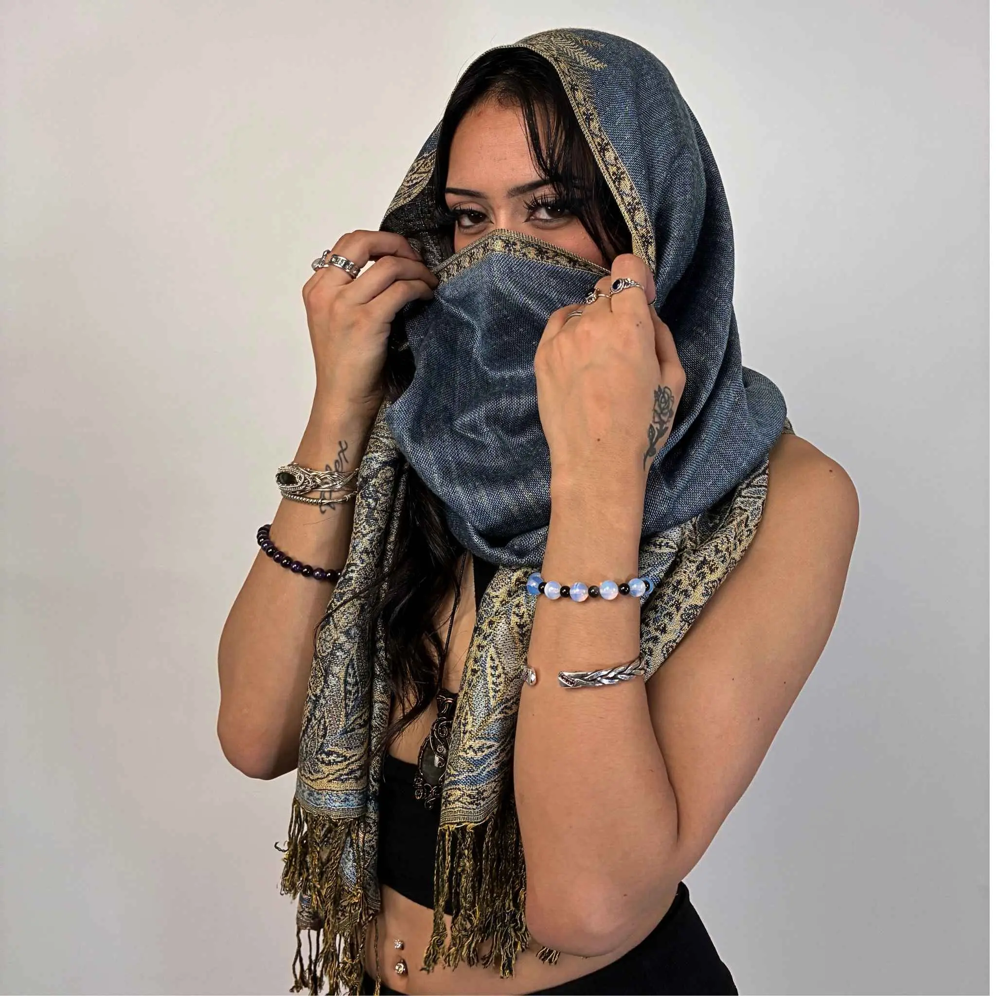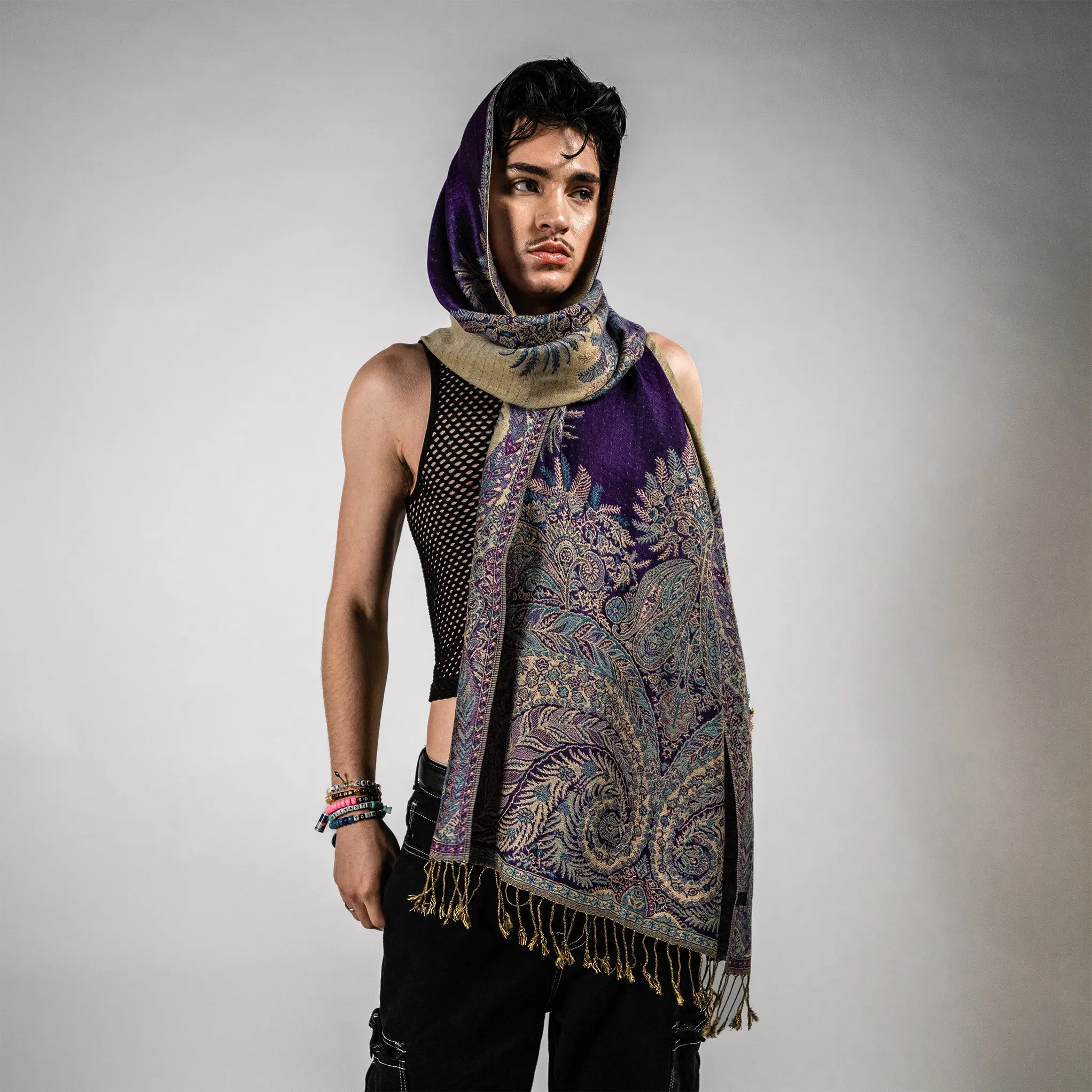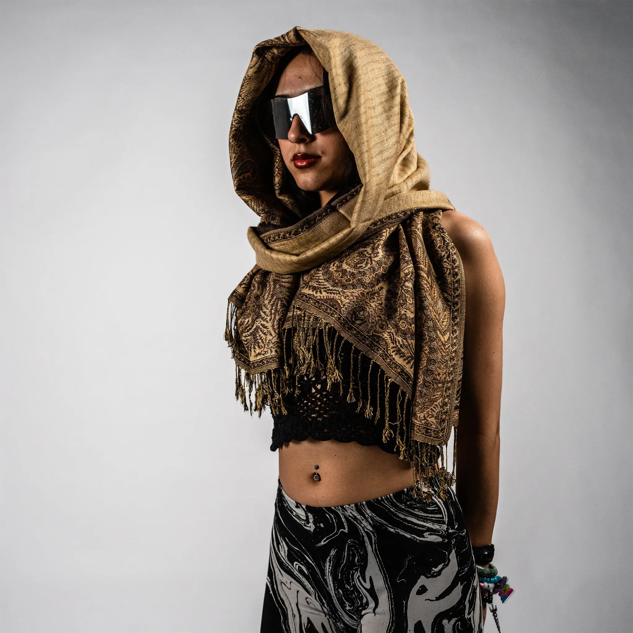 Glow up and stand out with the Golden Fern Pash.This extra-smooth, lightweight wrap shimmers with intricate fern patterns and a touch of golden radiance, making it the perfect statement piece for festivals, nights out, or cozy everyday layering.Whether you’re vibing at a bass show or dressing up a simple outfit, the Golden Fern wraps you in effortless style and comfort.