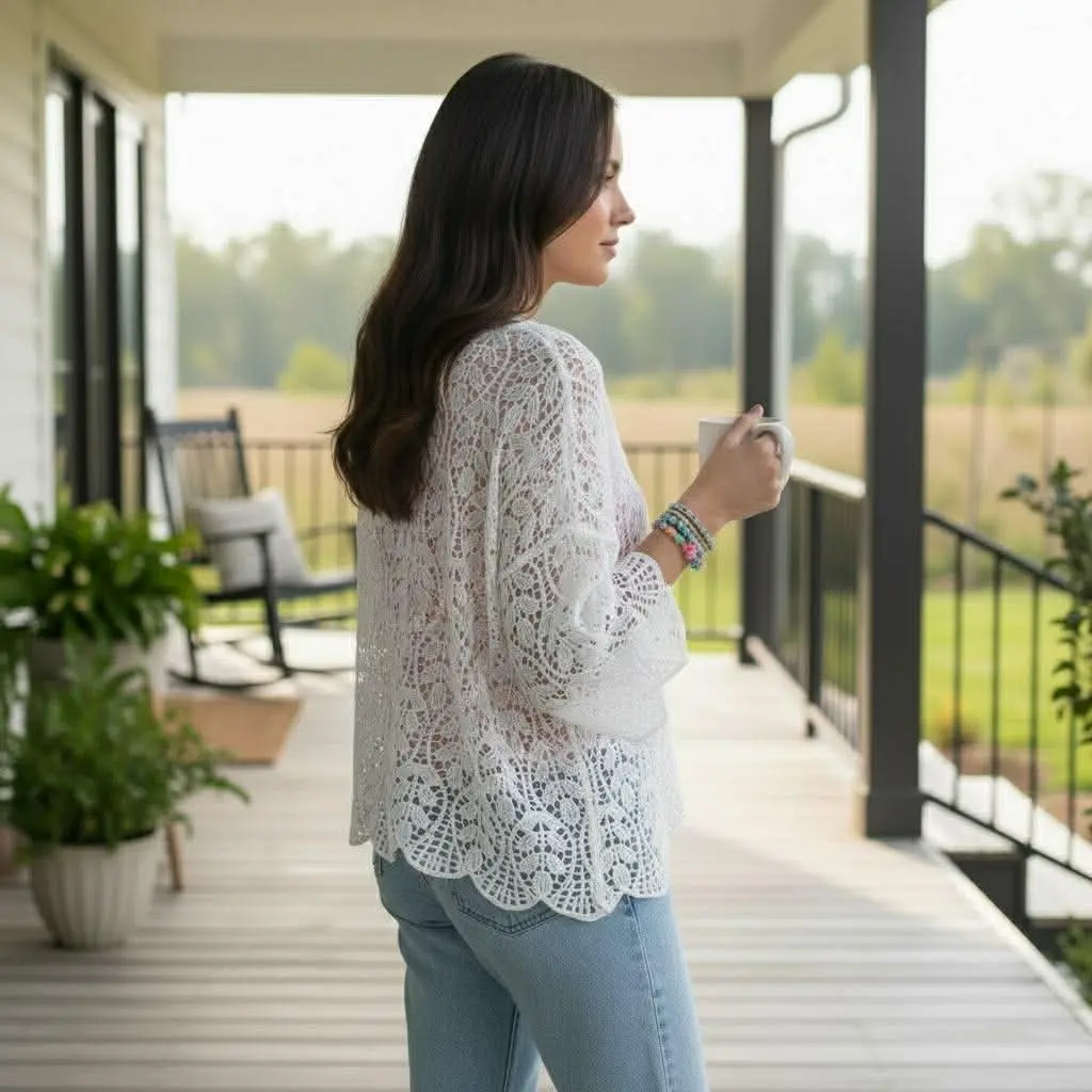 The relaxed fit and openwork design make it easy to pair with tanks, camis, dresses, or casual tees for a versatile outfit that transitions from day to night. Whether you’re styling a casual outfit with denim or adding texture to a dress, this boho-inspired crochet cardigan is a must-have for creating easy, polished looks. ⸻ Key Features: • Lightweight crochet cardigan for women • Intricate leaf pattern open knit design • Easy open-front silhouette for layering • Relaxed, comfortable fit • Breathable 100% cotton fabric • Perfect for casual wear, vacation outfits, or transitional layering ⸻