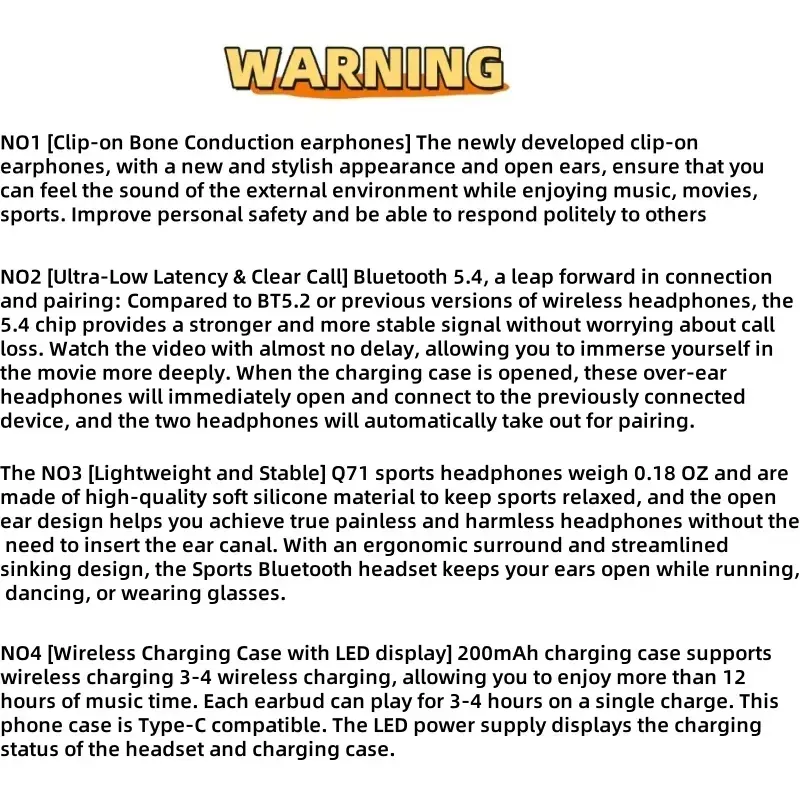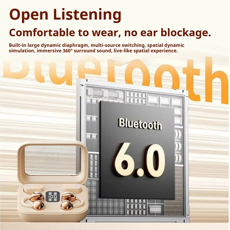Hetoie 2026 Open-Back Bluetooth-compatible Earbuds, Wireless Headphones with Clear Mic, Type-C Fast Charging, Comfortable All-Day Wear