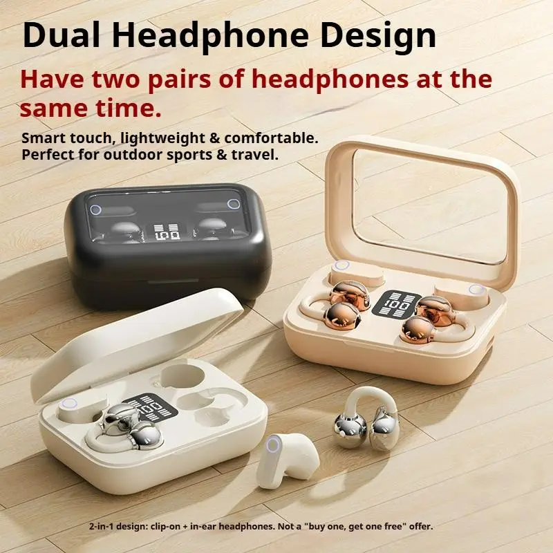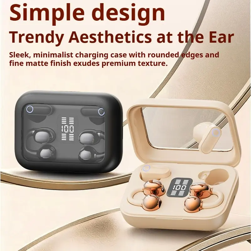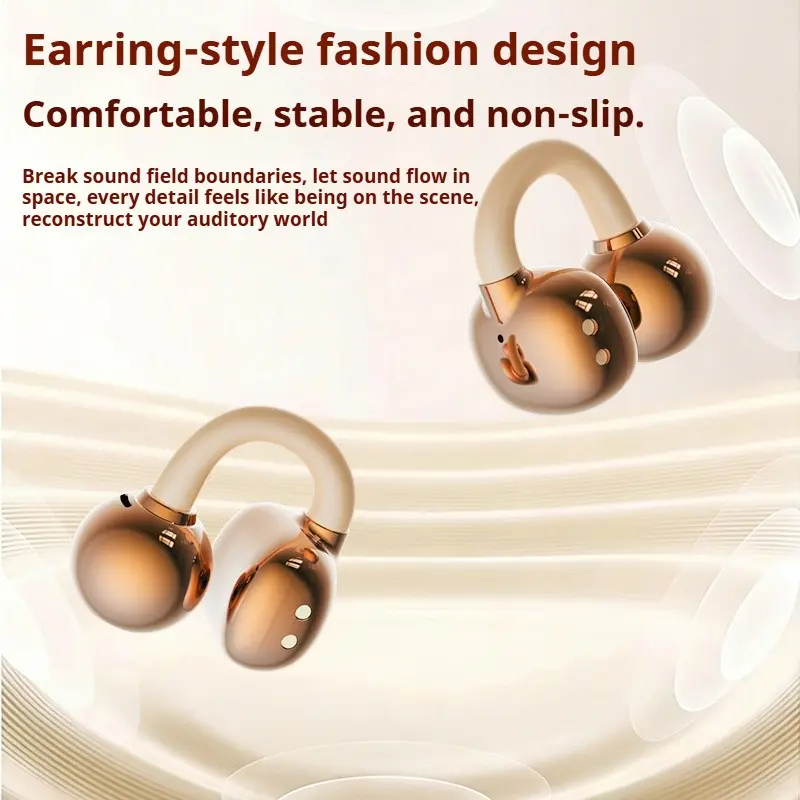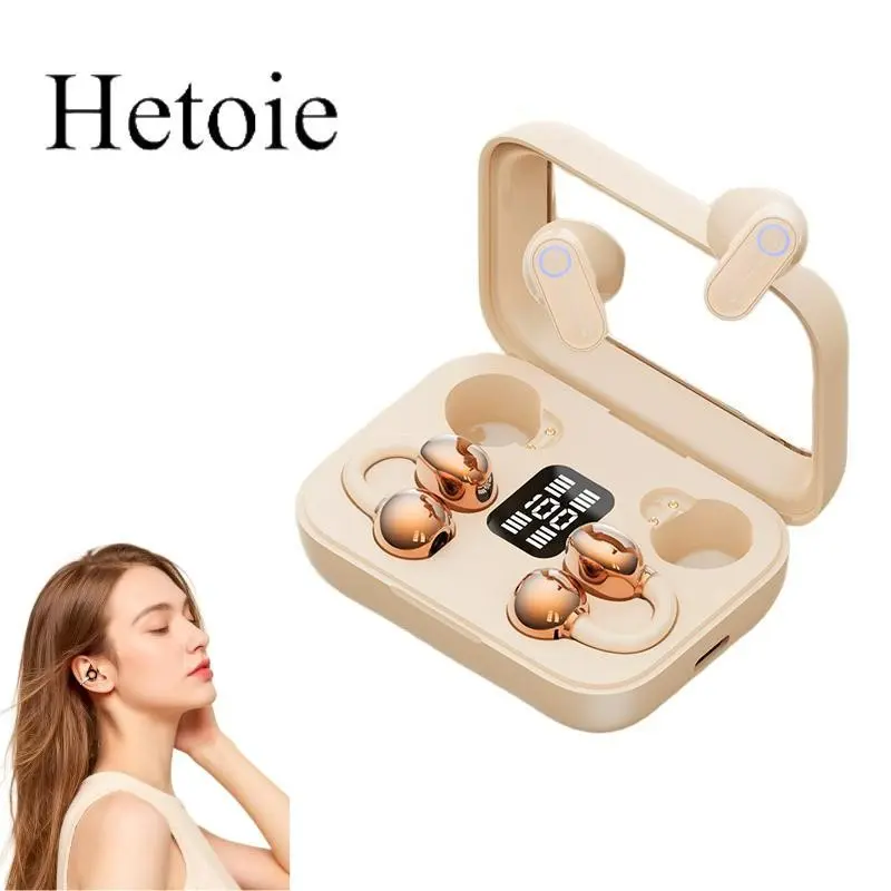 Hetoie 2026 New Open Ear Clip Headphones, Wireless Earbuds Like Earrings Fashion Style, Hi-Fi Deep Bass Stereo, Built in Mic, Type-C Fast Charging Auto Pair, Comfort & Secure Fit for Sports Office Gaming, Compatible iPhone Android PC
