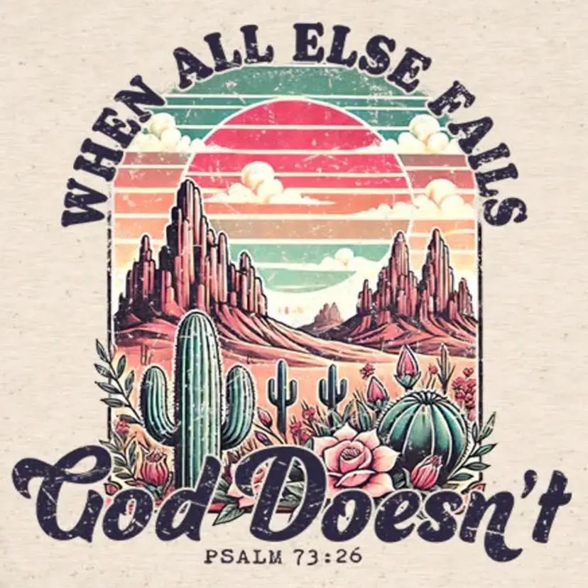 When the plans fall apart, the answers don't come, and the road ahead feels uncertain — this truth remains: when all else fails, God doesn't. Set against a sweeping desert scene, this 2x2 magnet is as grounding as the landscape it depicts — vast, steady, and full of quiet strength.