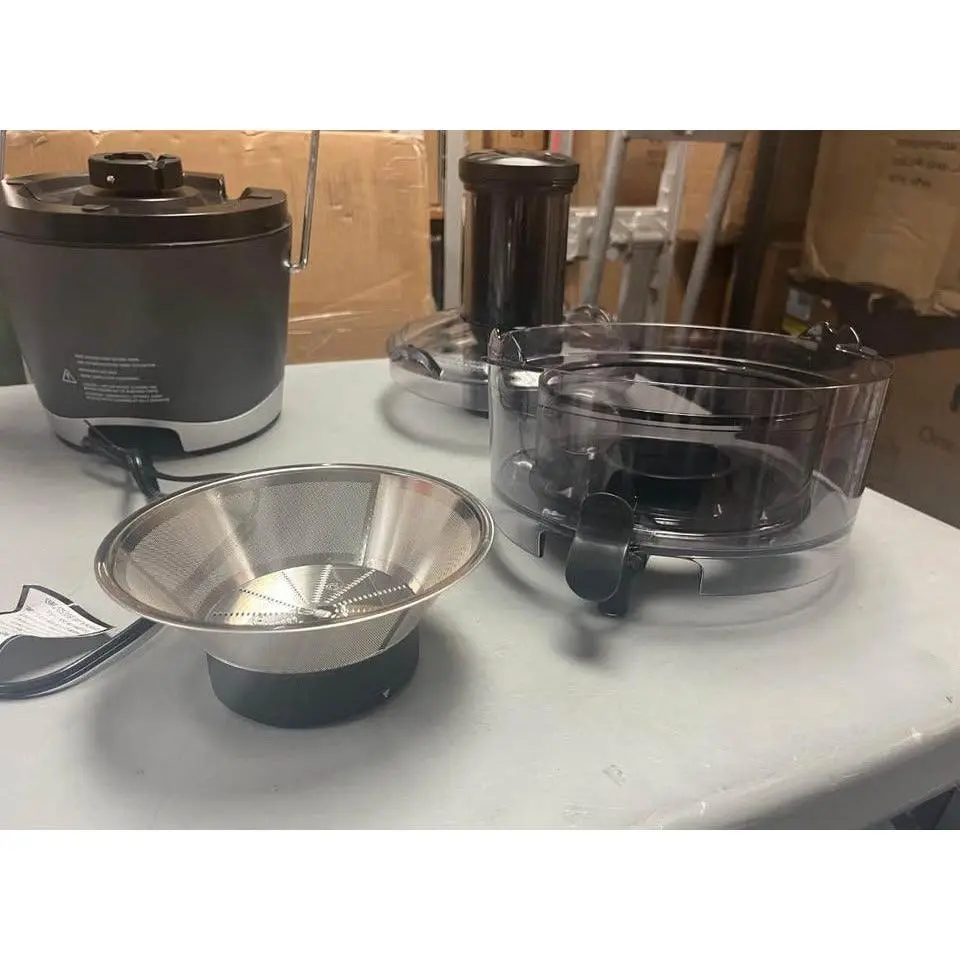 Includes: (1) 800W Motor Base, (1) 1.5L Pulp Basin with 3” wide feed chute, (1) Stainless Steel Sieve, (1) 27oz Juice Pitcher (1) Sealing pitcher lid with froth separator, (1) Food Pusher, (1) Cleaning Brush and User & Recipe Guides