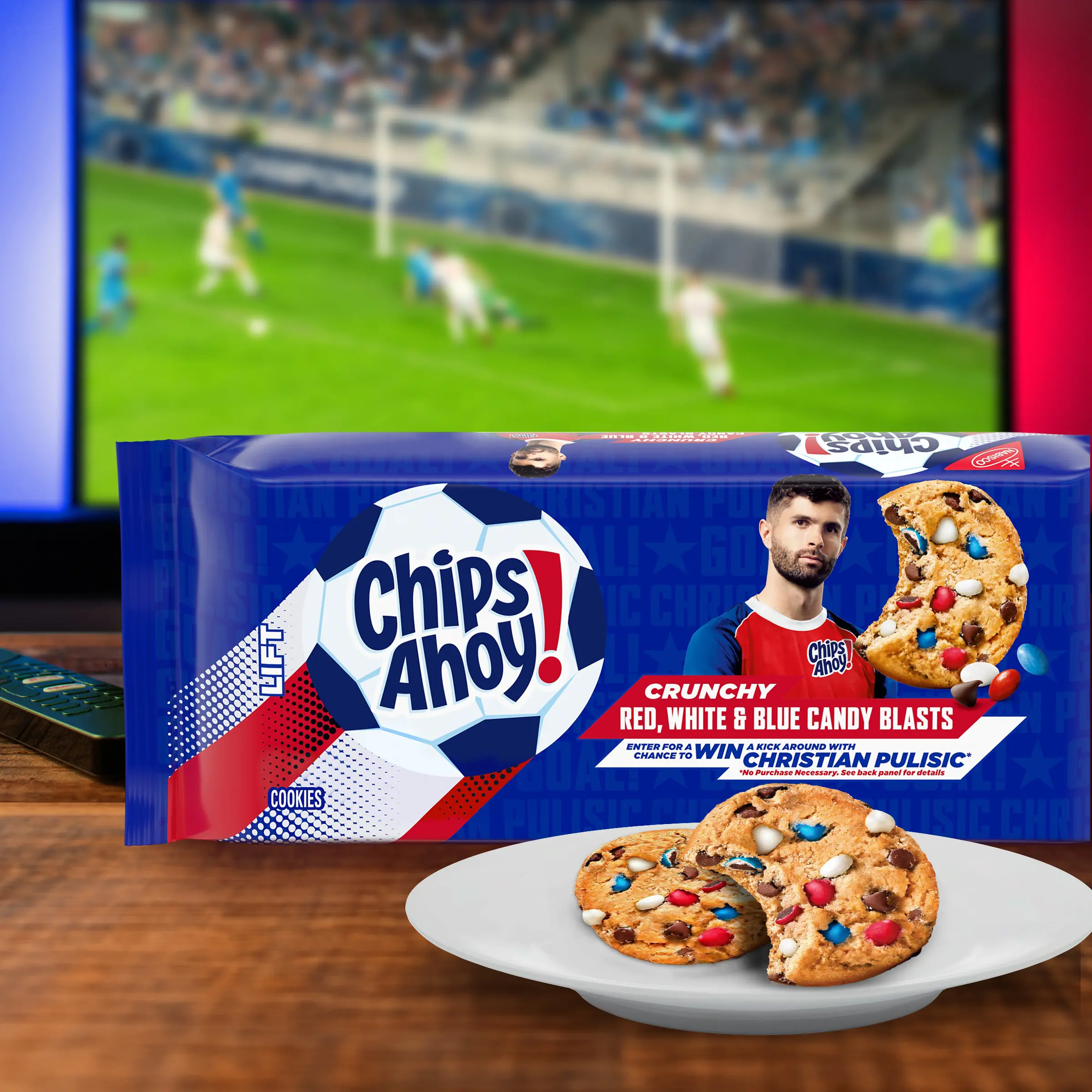 ·NEW CHIPS AHOY! Crunchy Red, White & Blue Candy Blasts Cookies – Crunchy chocolate chip cookies with red, white, and blue candy pieces.