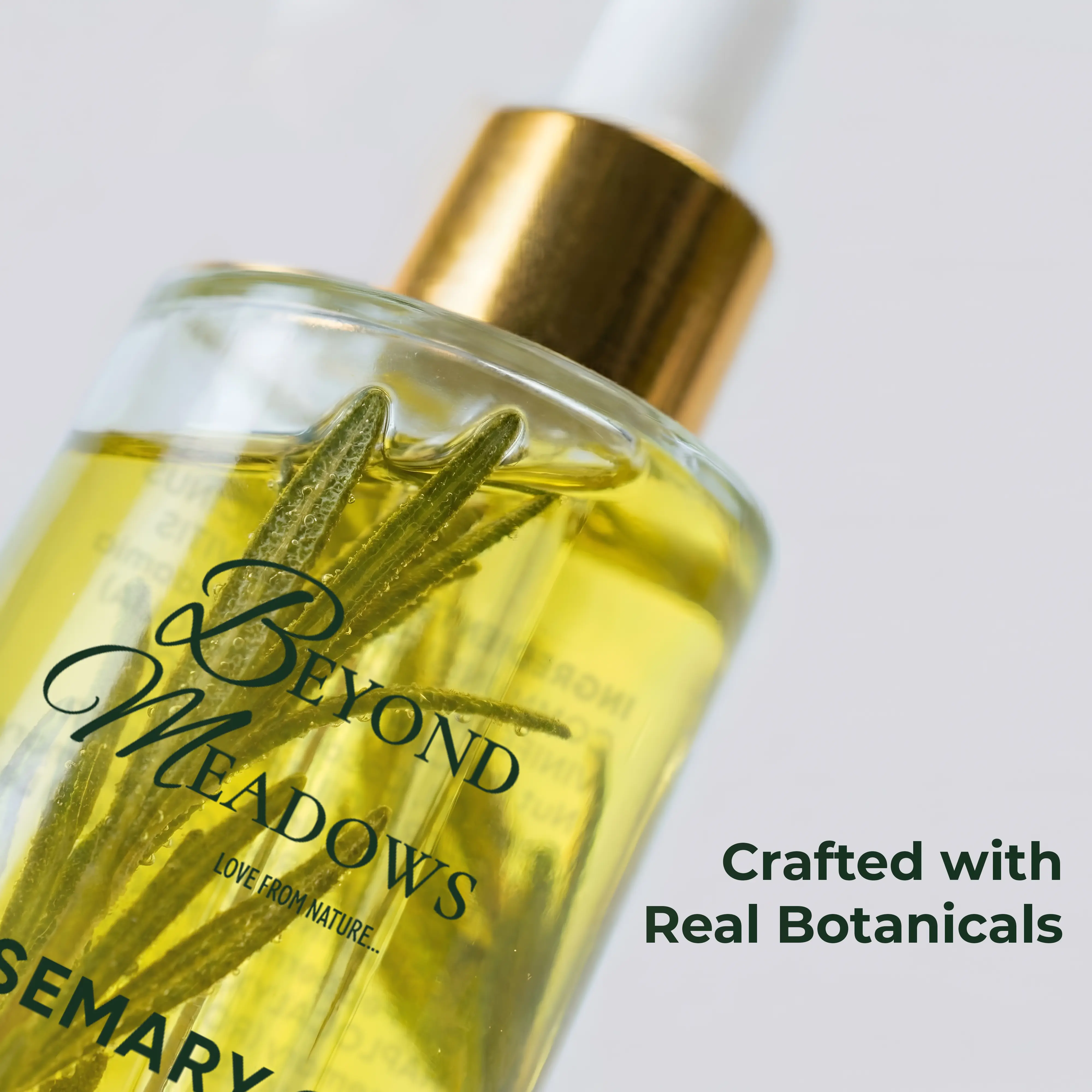 Beyond Meadows Organic Rosemary Oil for Hair Growth – Infused with Biotin, Castor Oil & Peppermint for Healthier Hair & Stronger Roots, Split Ends & Dry Scalp Treatment - with Dropper (3.38 fl oz)