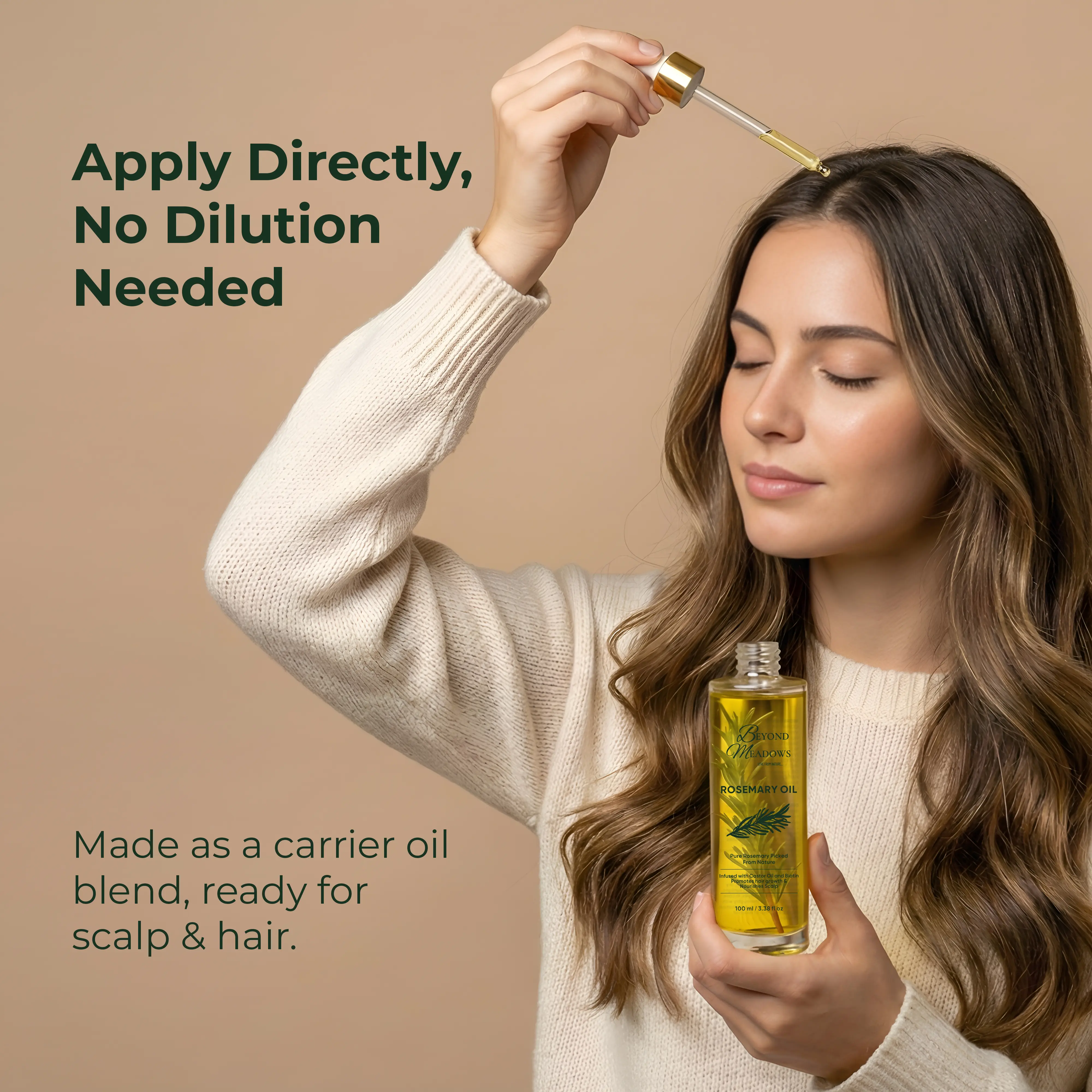 READY TO USE, NO DILUTION NEEDED: Crafted for busy routines, use the dropper to apply an organic rosemary oil directly to your scalp & dry ends. Gently massage with your fingertips & smooth a little through mid-lengths for all-over nourishment.