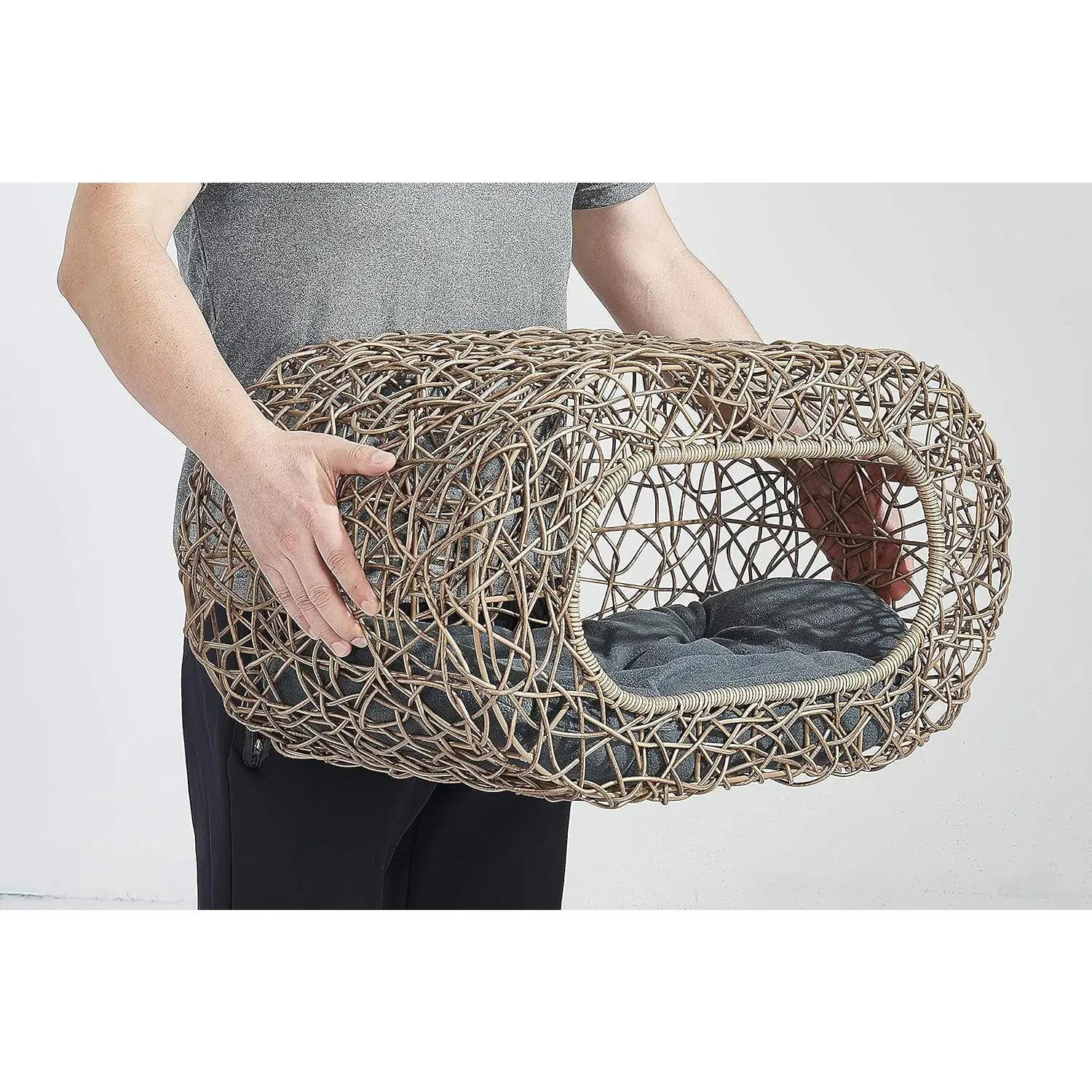 Give your feline the gift of comfort and style. The Fun Stackable Cat Condo by The Max & Rex Collection is the perfect blend of cozy design and playful function. Built with a handwoven faux rattan frame, it adds a modern touch to your home while providing your cat with a private retreat for lounging, hiding, and playing.