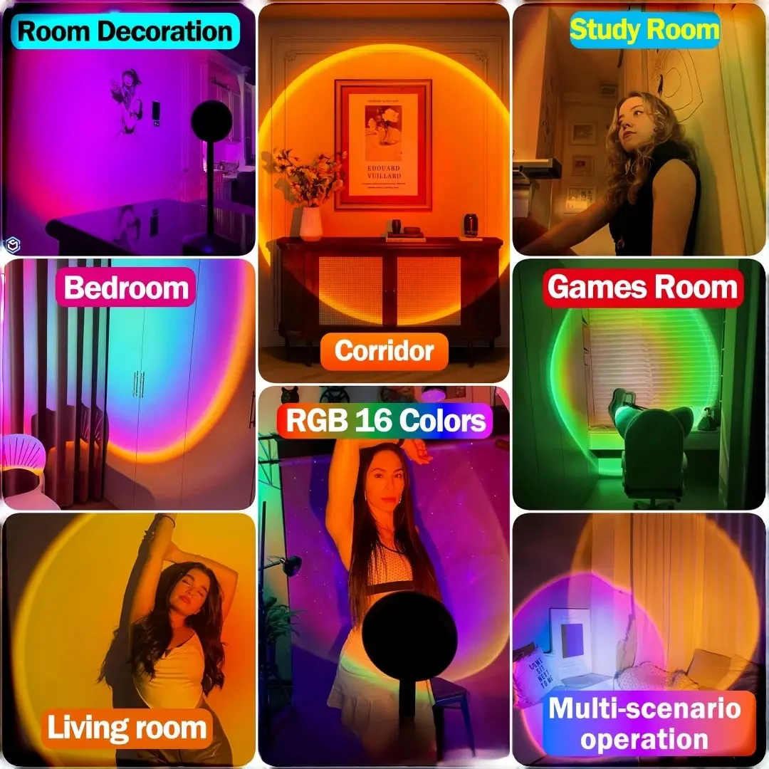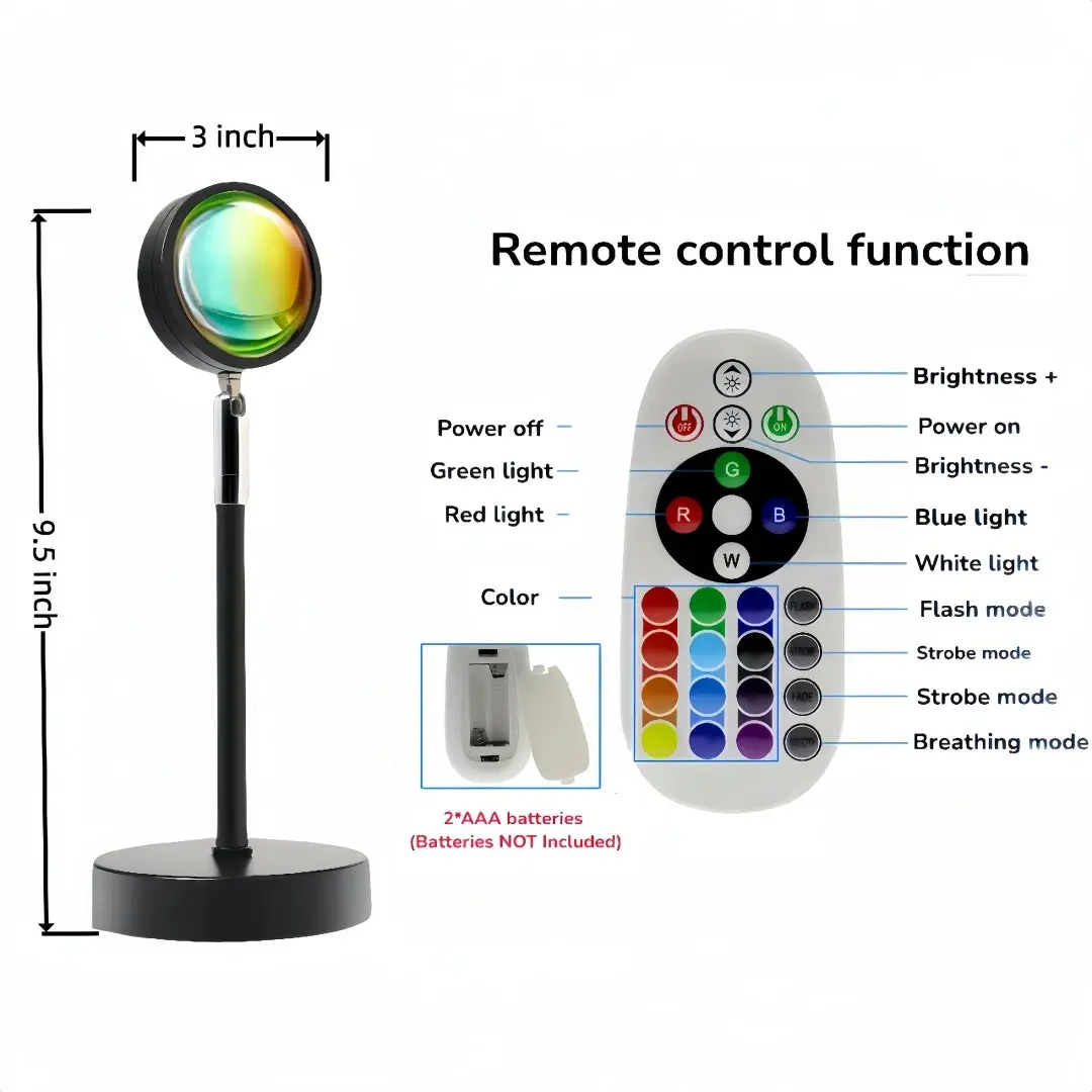 Sunset Lamp with Remote, Multicolor 180 Rotation Night Light