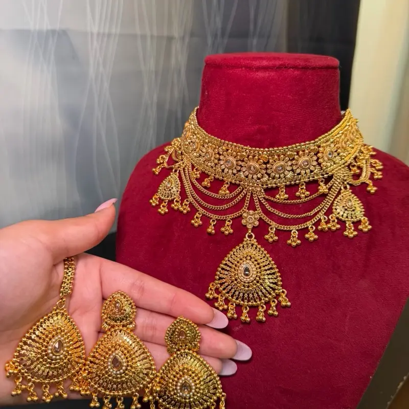 Heavy 1 gram gold Kundan Choker Necklace Set | Bridal Statement Jewelry