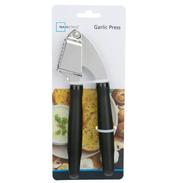 Mainstays 7.7 inch Ergonomic Lightweight Stainless Steel Garlic Press features soft touch and ergonomic handles for comfortable pressing. Large chamber allows multiple garlic cloves to be pressed at same time. Entirely made of stainless steel for longevity and durability. Removable stainless steel chamber for effortless cleaning. Sturdy yet lightweight design for ease of use. Dishwasher safe. Made from BPA free materials for safe use.